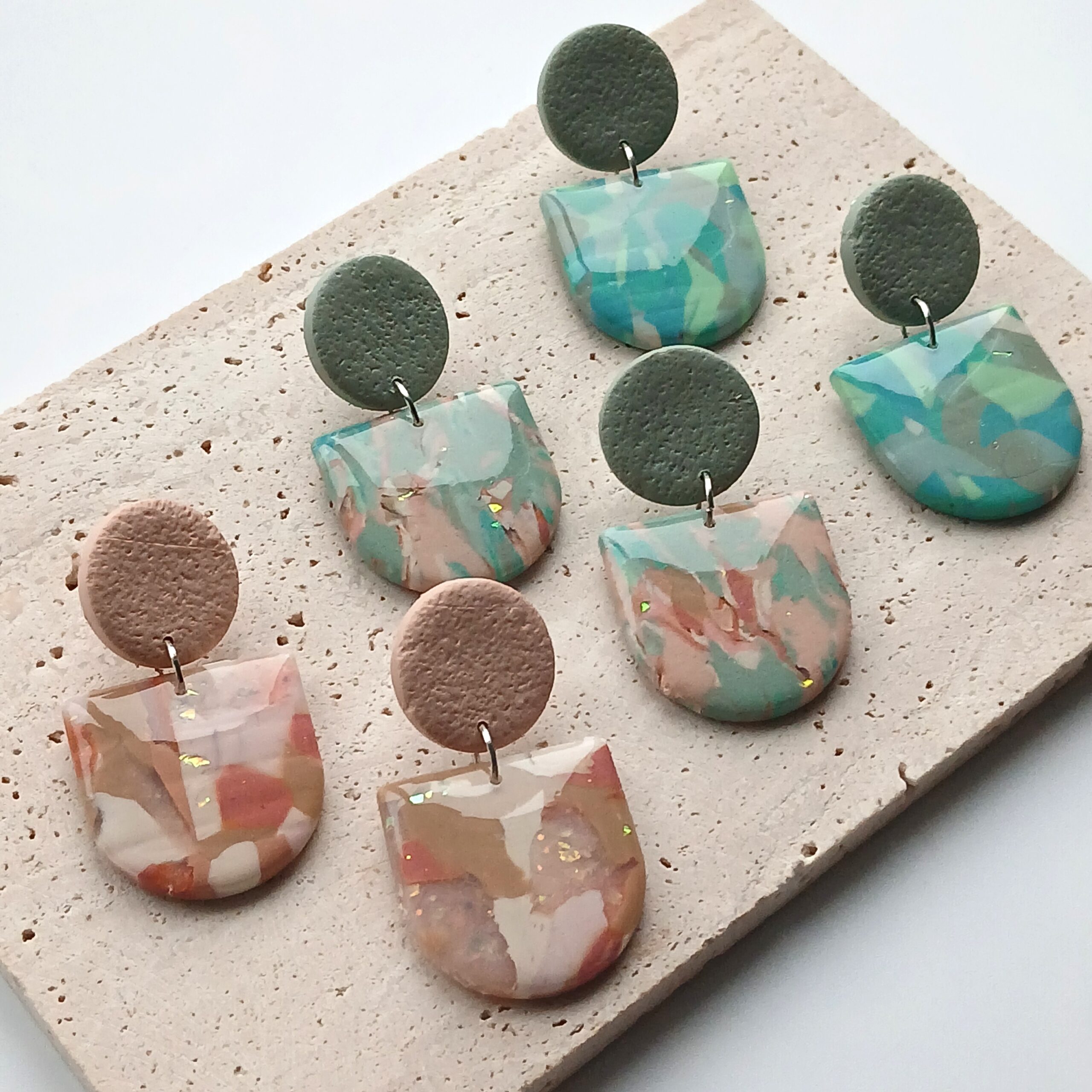 De oorbellen zijn handgemaakt in polymeerklei dus licht en aangenaam om dragen.