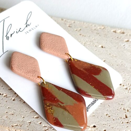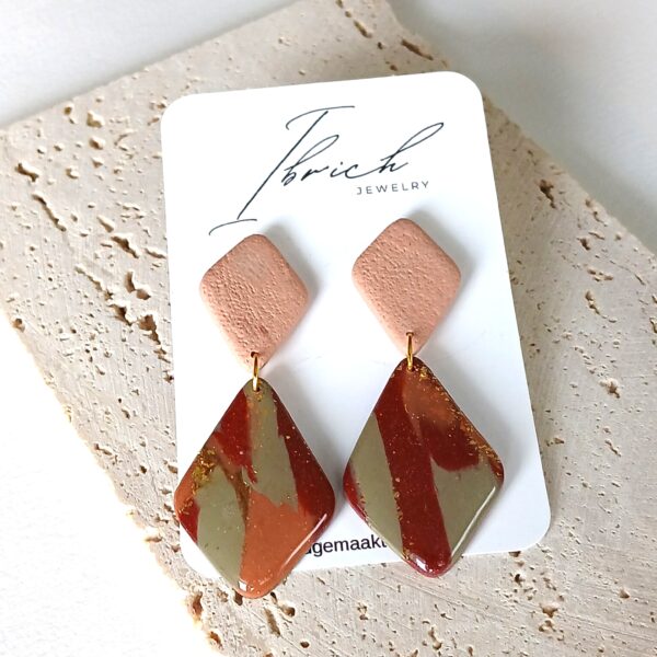 De oorbellen zijn handgemaakt in polymeerklei dus licht en aangenaam om dragen.