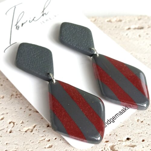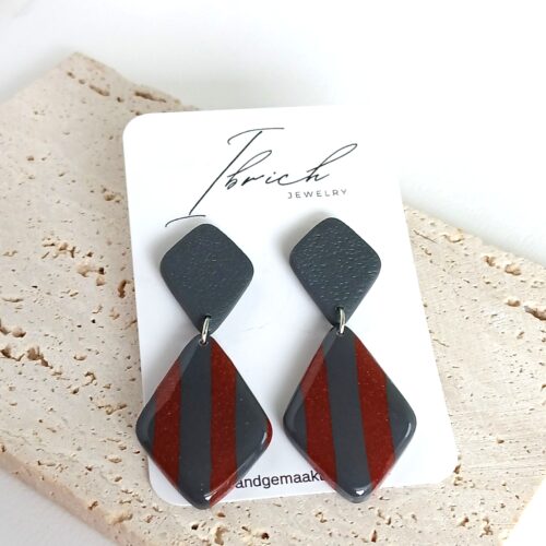 De oorbellen zijn handgemaakt in polymeerklei dus licht en aangenaam om dragen.