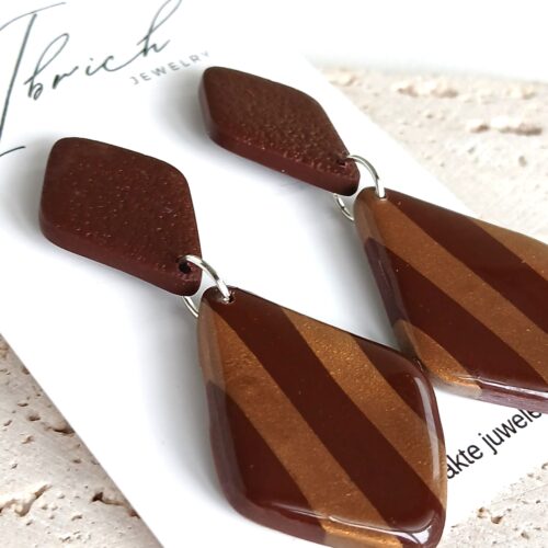 De oorbellen zijn handgemaakt in polymeerklei dus licht en aangenaam om dragen.