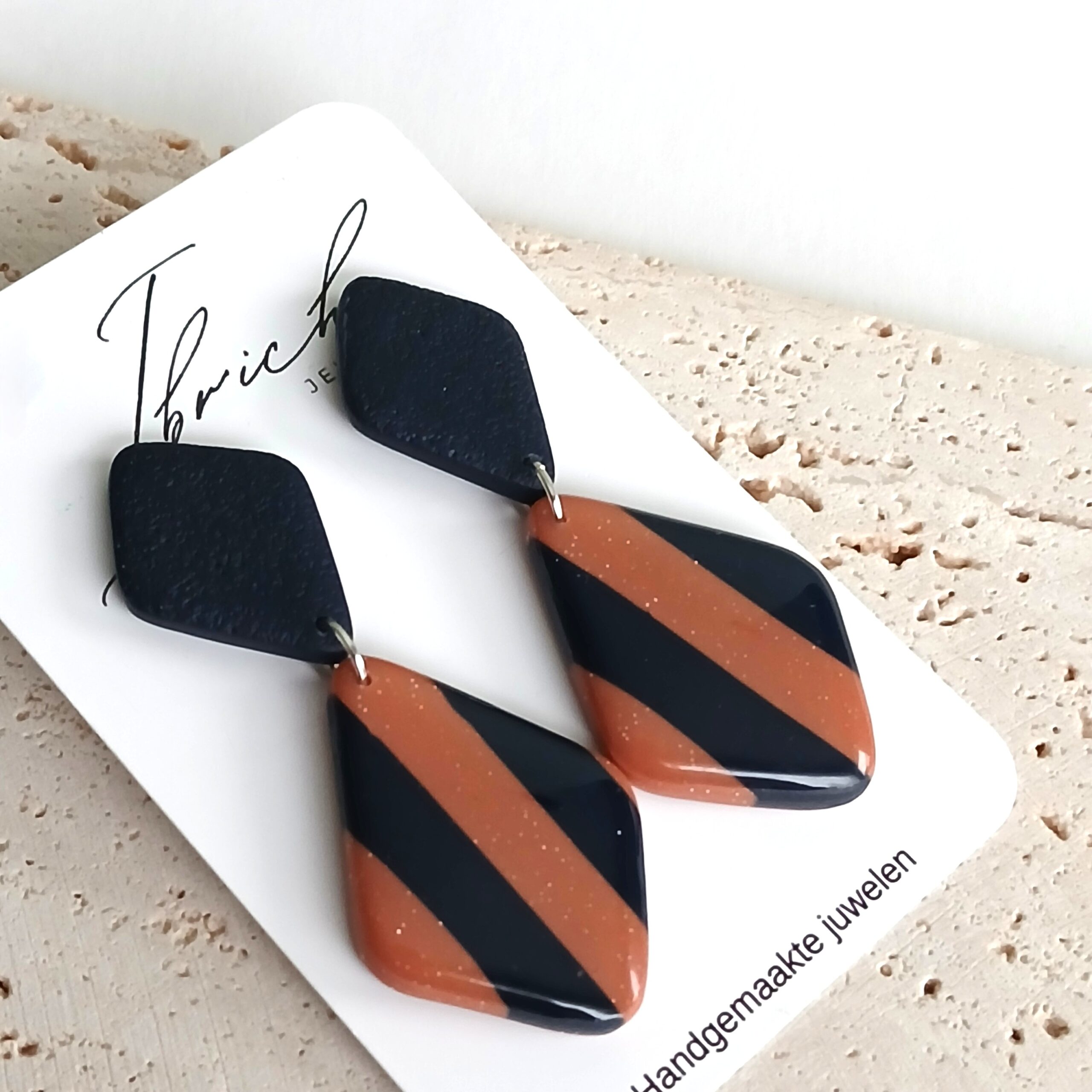 De oorbellen zijn handgemaakt in polymeerklei dus licht en aangenaam om dragen.
