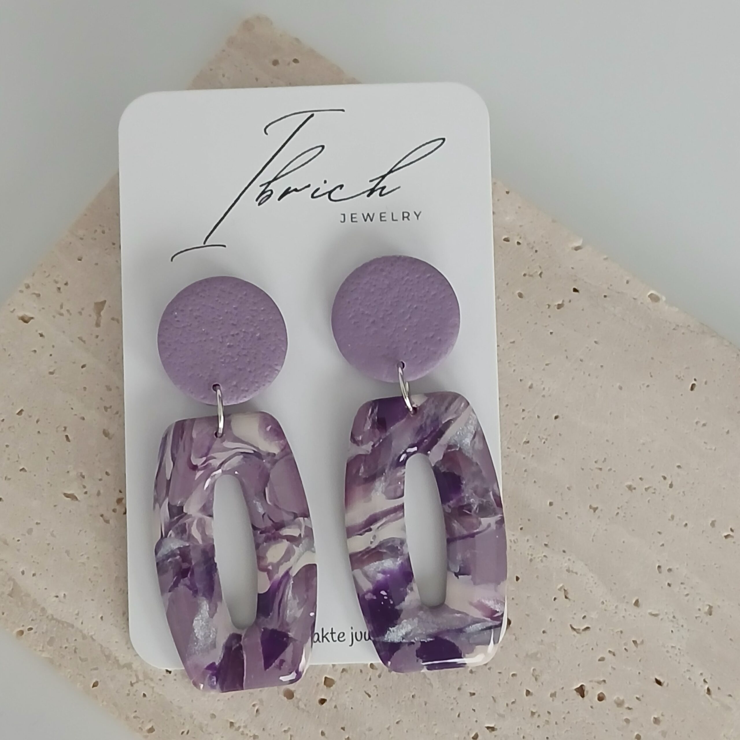 De oorbellen zijn handgemaakt in polymeerklei dus licht en aangenaam om dragen.