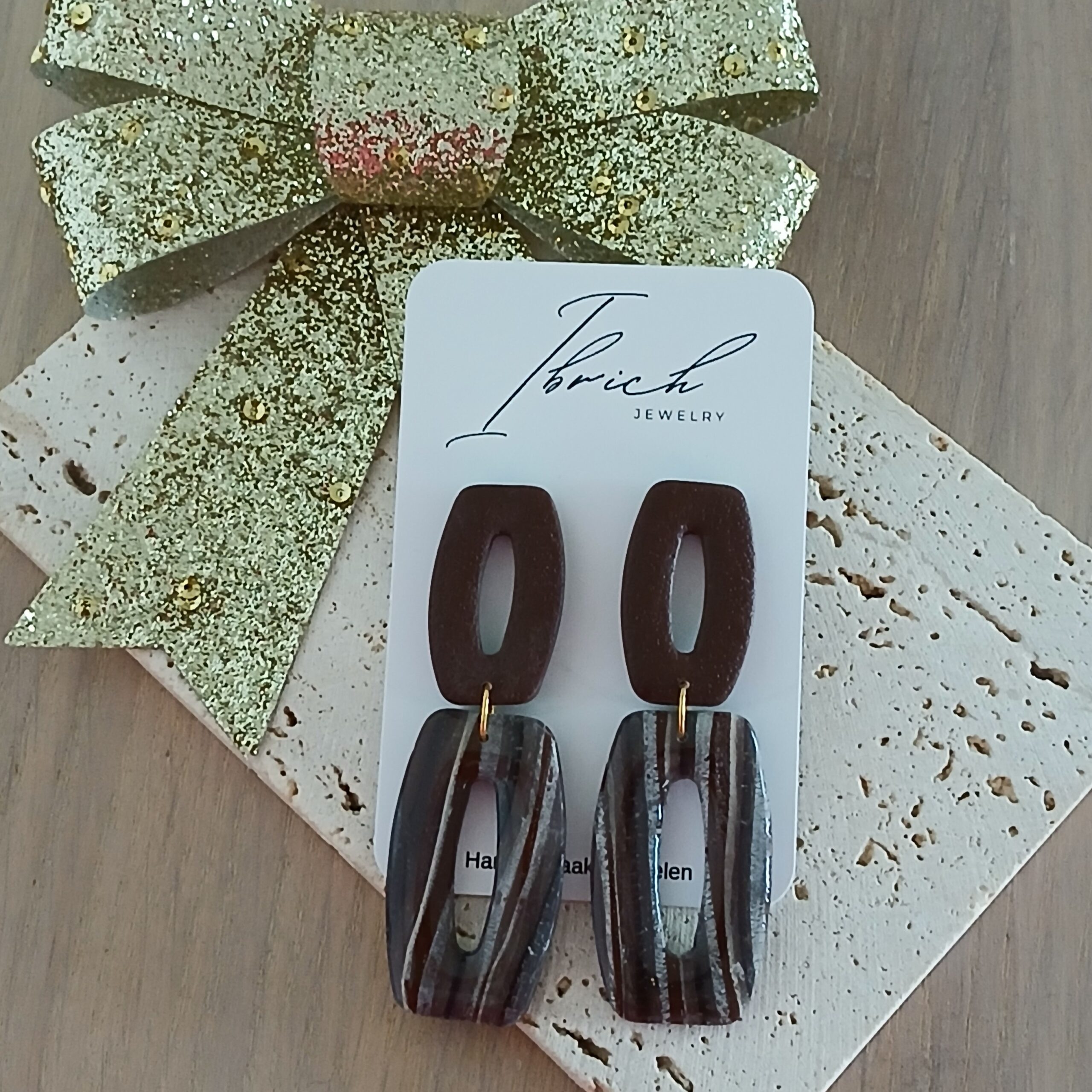 De oorbellen zijn handgemaakt in polymeerklei dus licht en aangenaam om dragen.