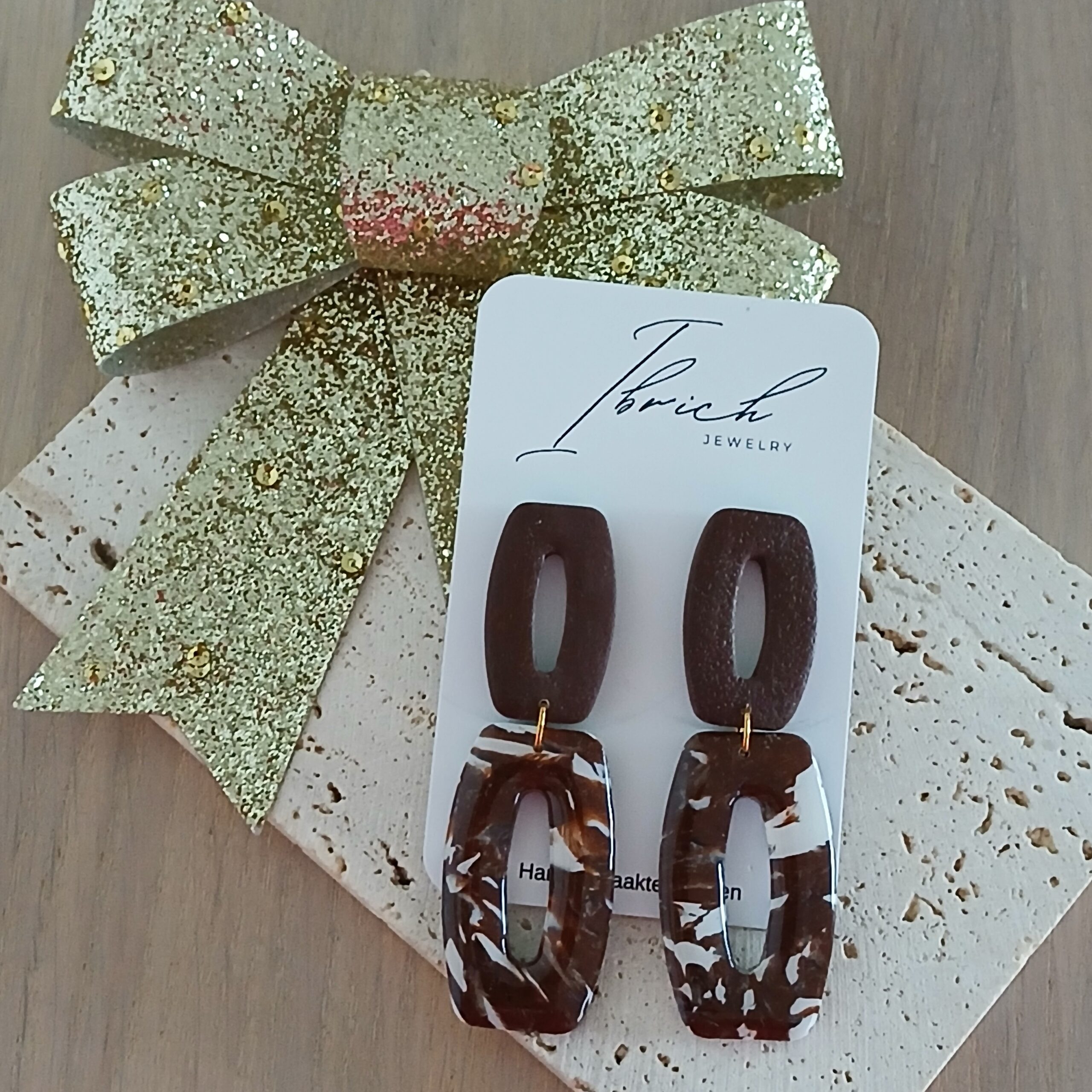 De oorbellen zijn handgemaakt in polymeerklei dus licht en aangenaam om dragen.