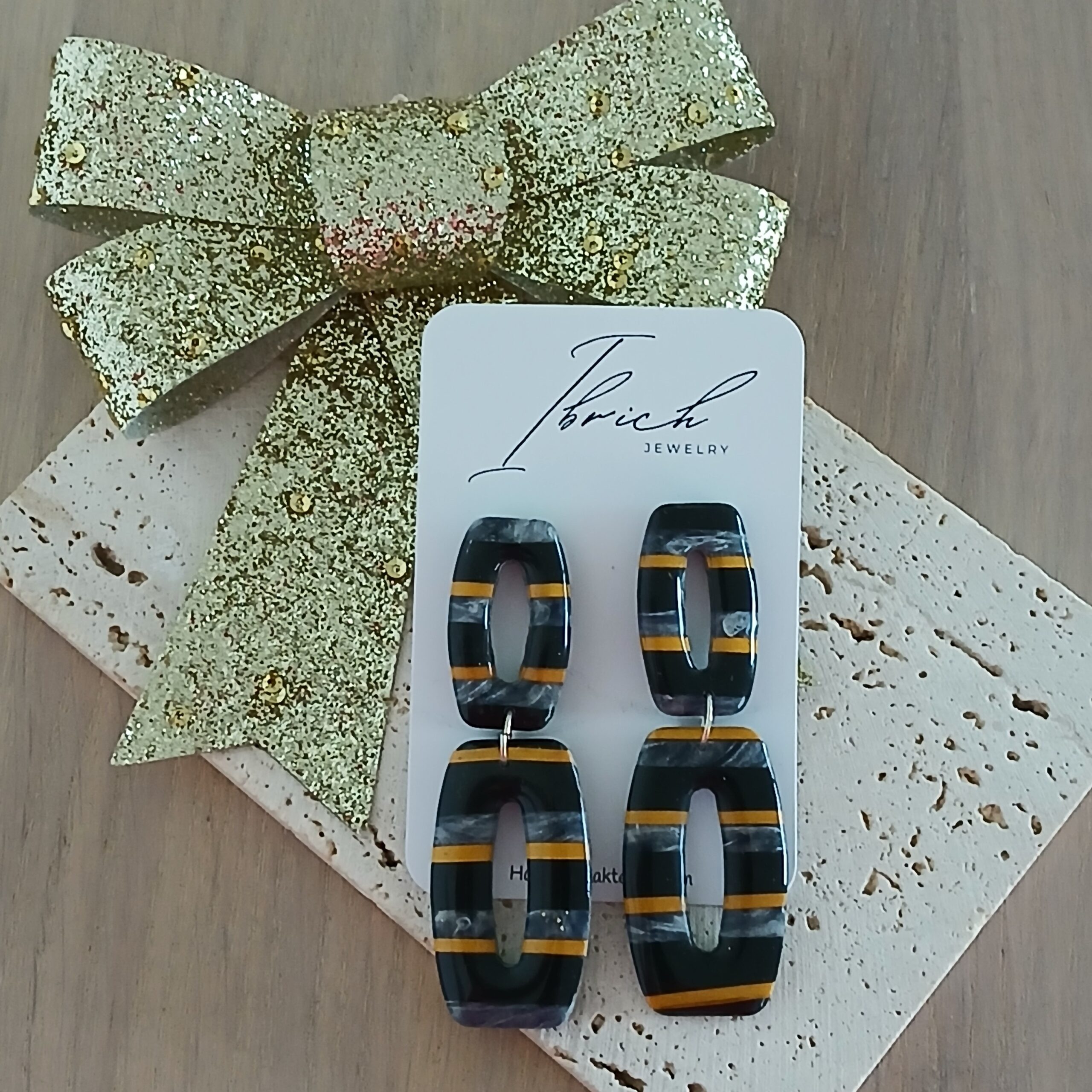 De oorbellen zijn handgemaakt in polymeerklei dus licht en aangenaam om dragen.