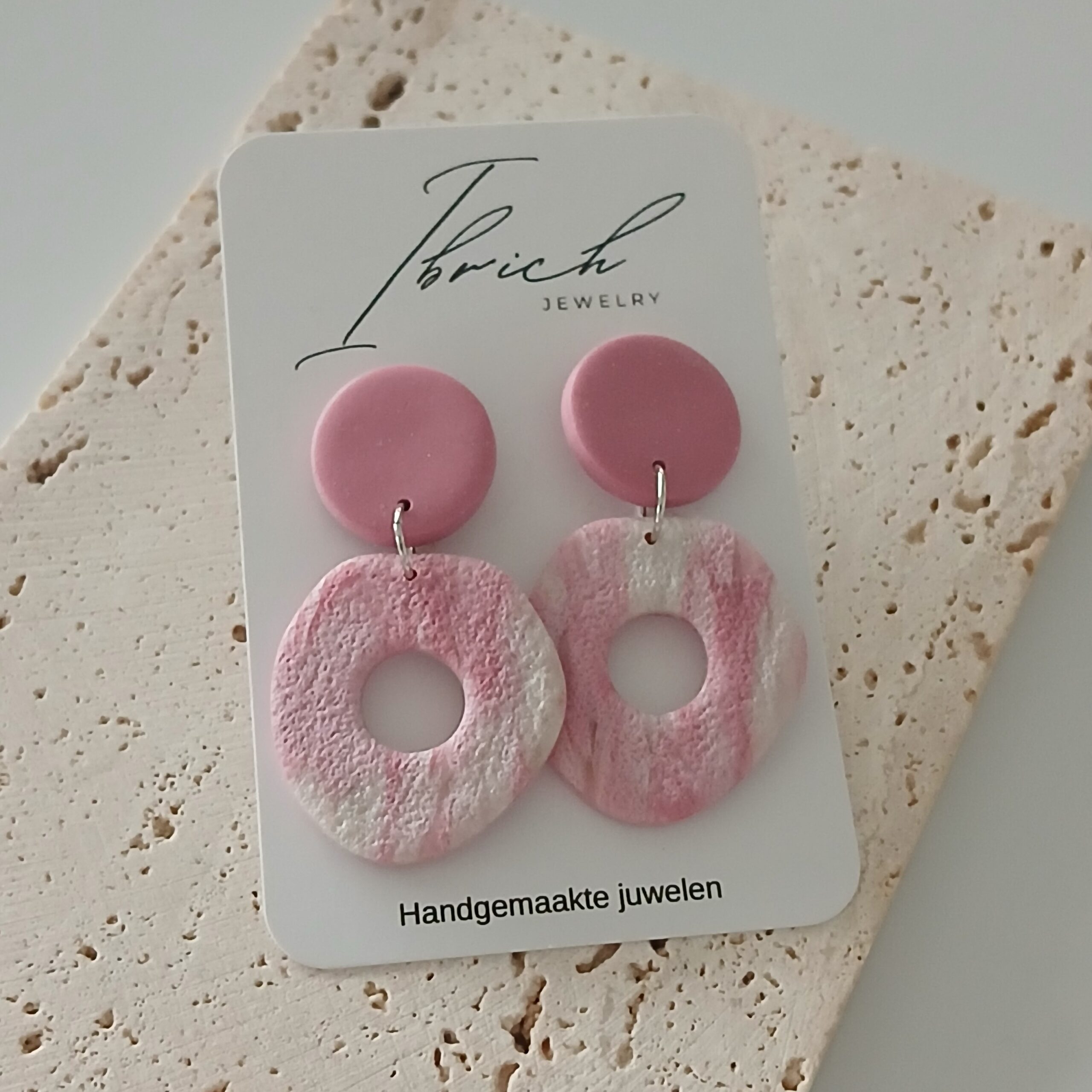 De oorbellen zijn handgemaakt in polymeerklei dus licht en aangenaam om dragen.