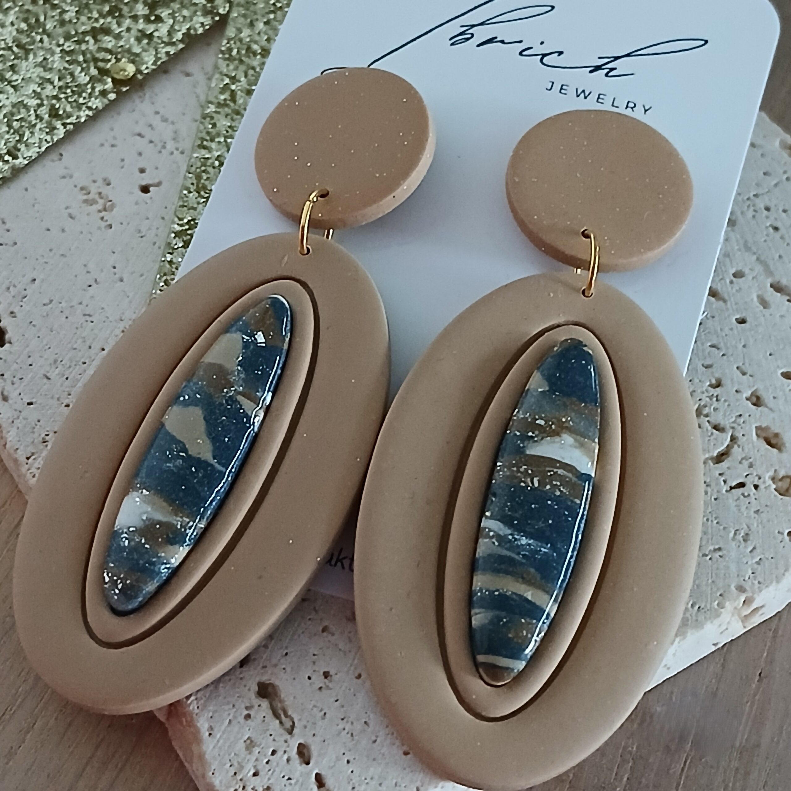 De oorbellen zijn handgemaakt in polymeerklei dus licht en aangenaam om dragen.