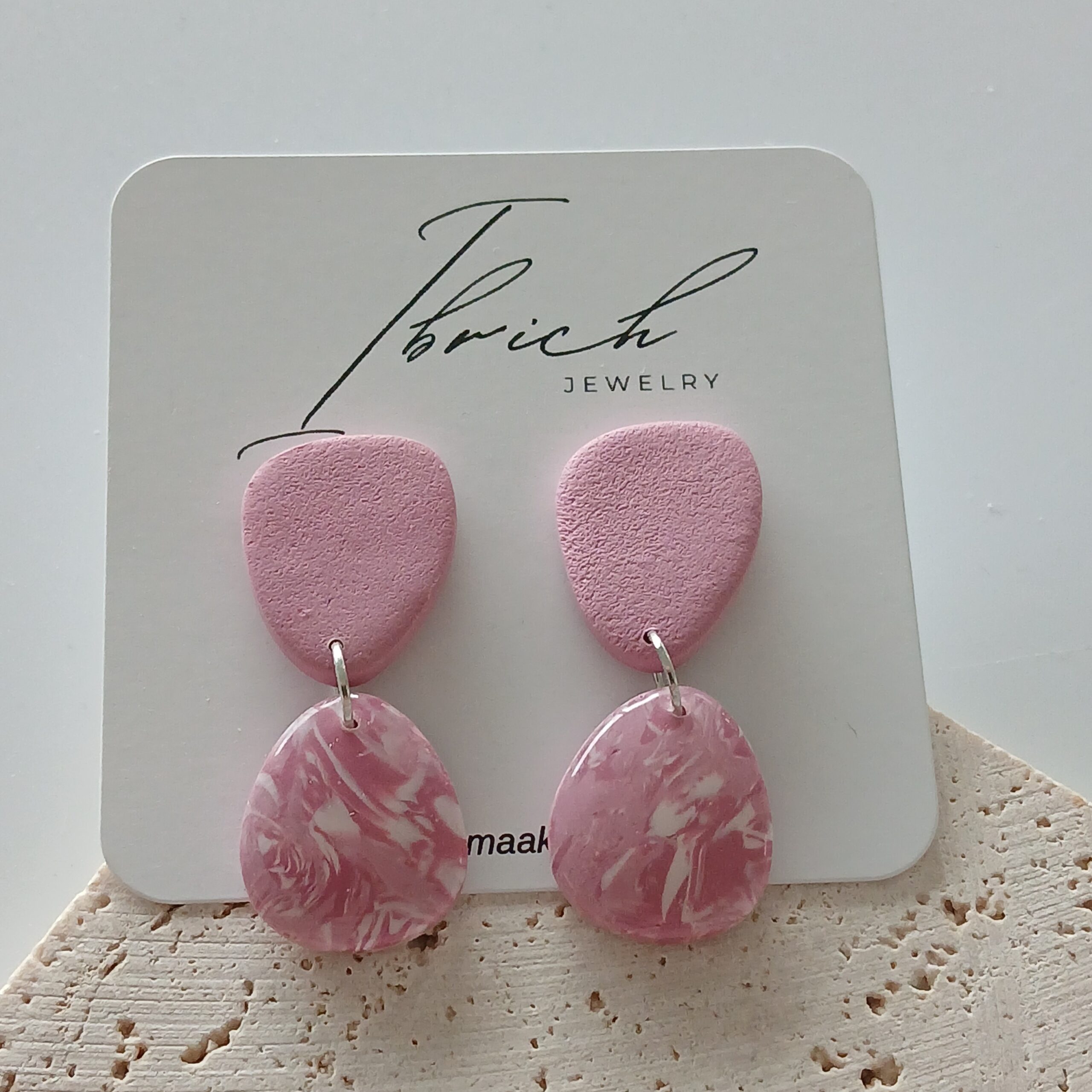 De oorbellen zijn handgemaakt in polymeerklei dus licht en aangenaam om dragen.