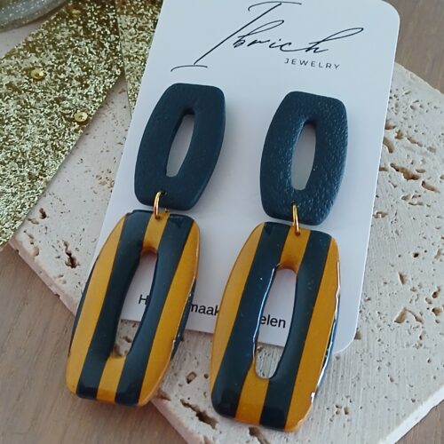 De oorbellen zijn handgemaakt in polymeerklei dus licht en aangenaam om dragen.