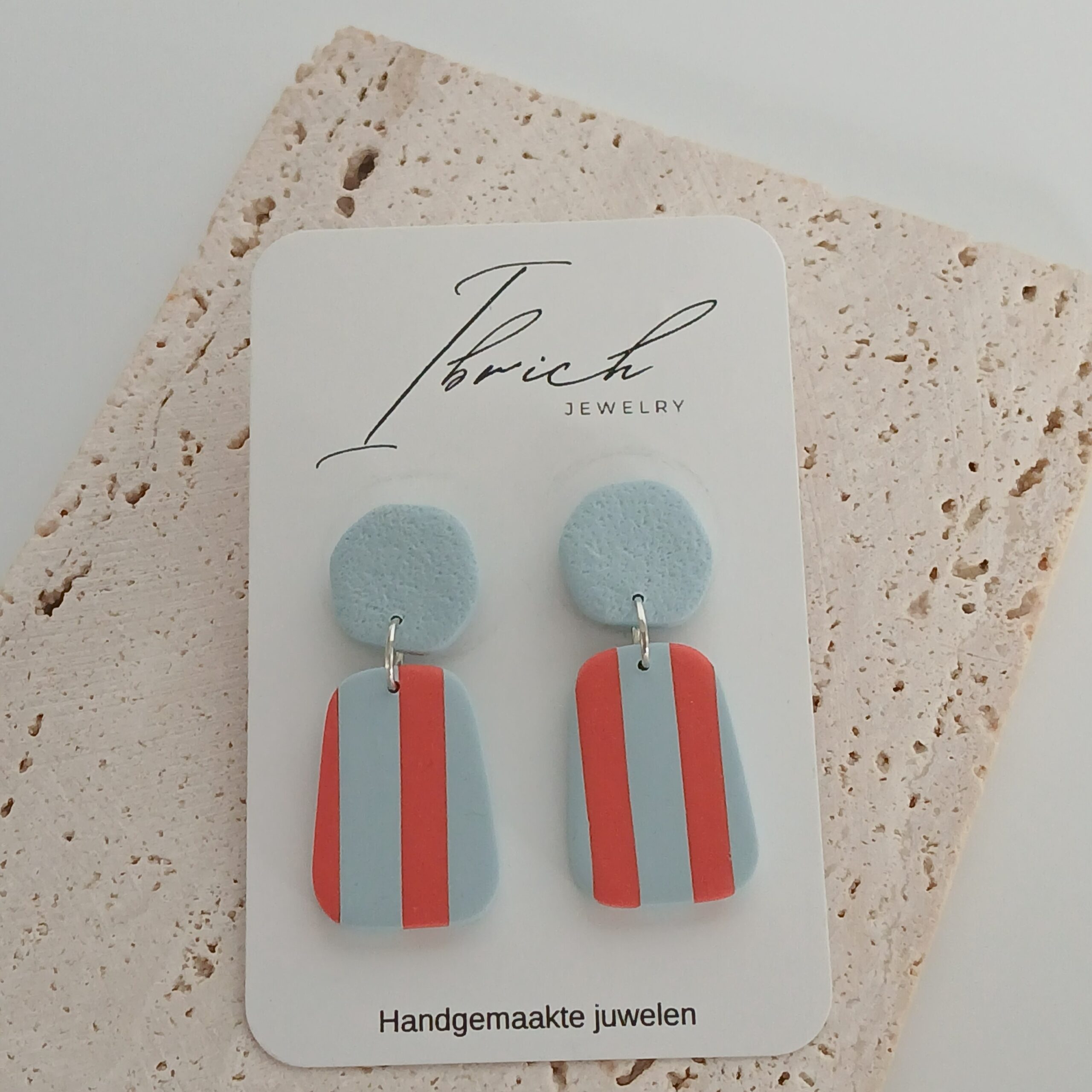 De oorbellen zijn handgemaakt in polymeerklei dus licht en aangenaam om dragen.