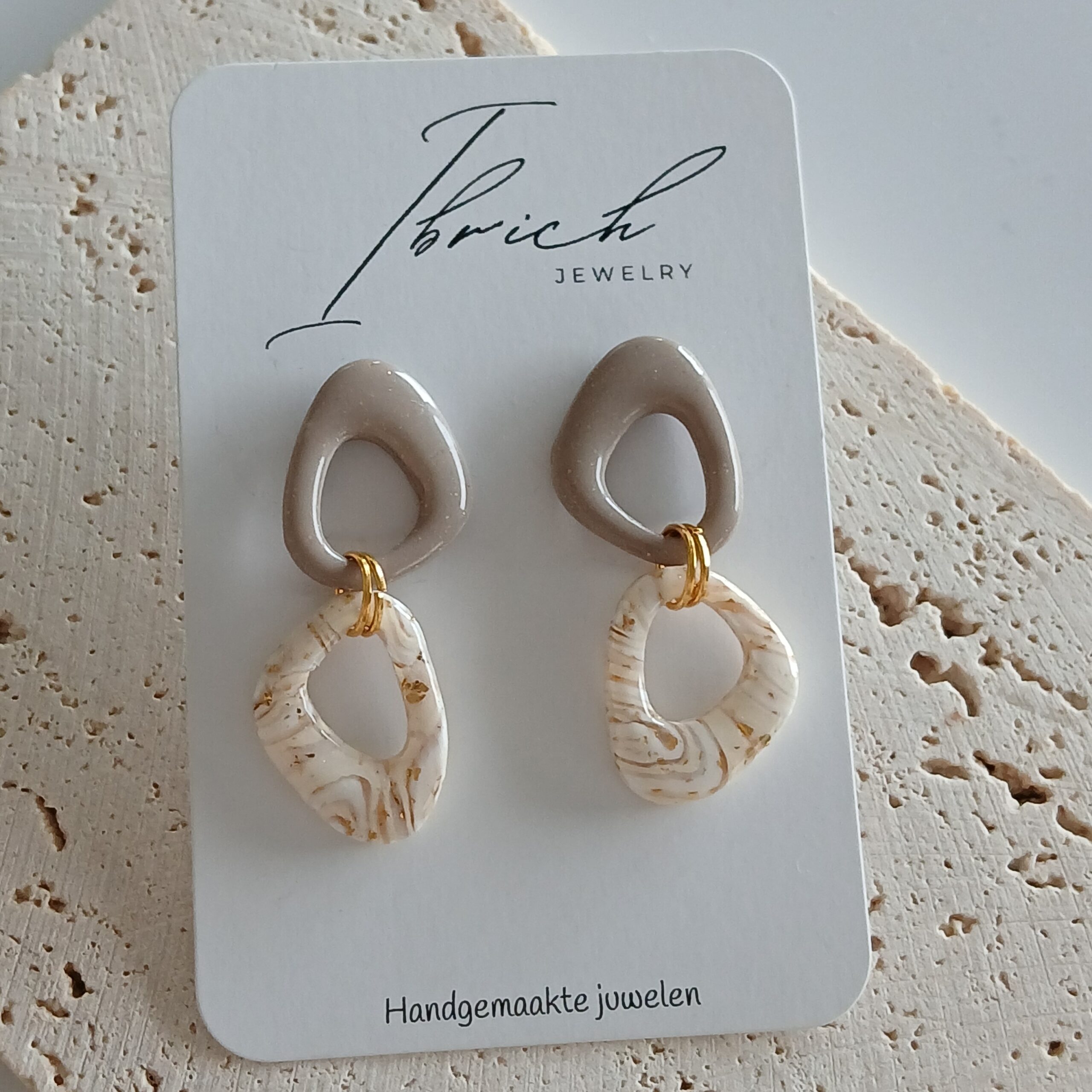 De oorbellen zijn handgemaakt in polymeerklei dus licht en aangenaam om dragen.