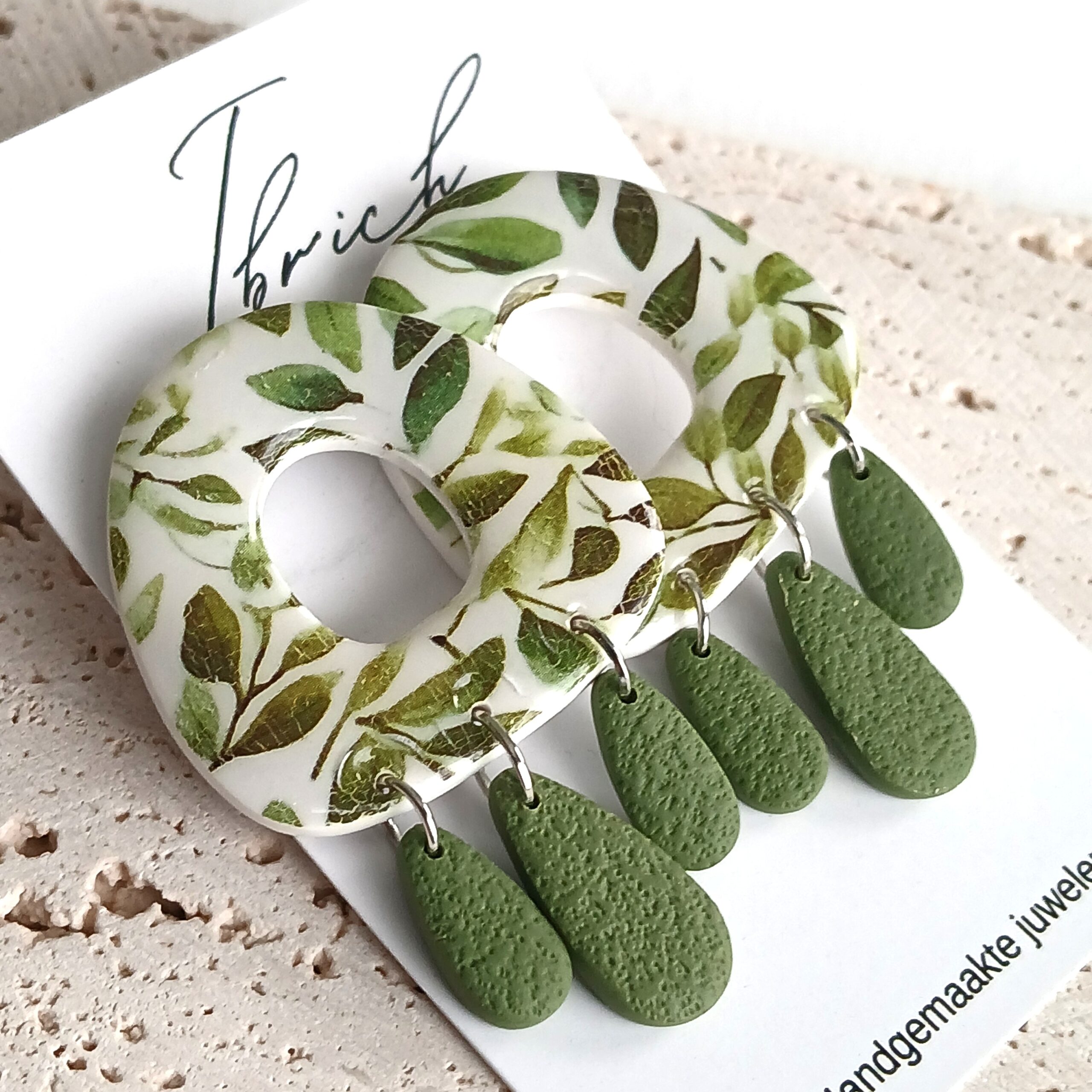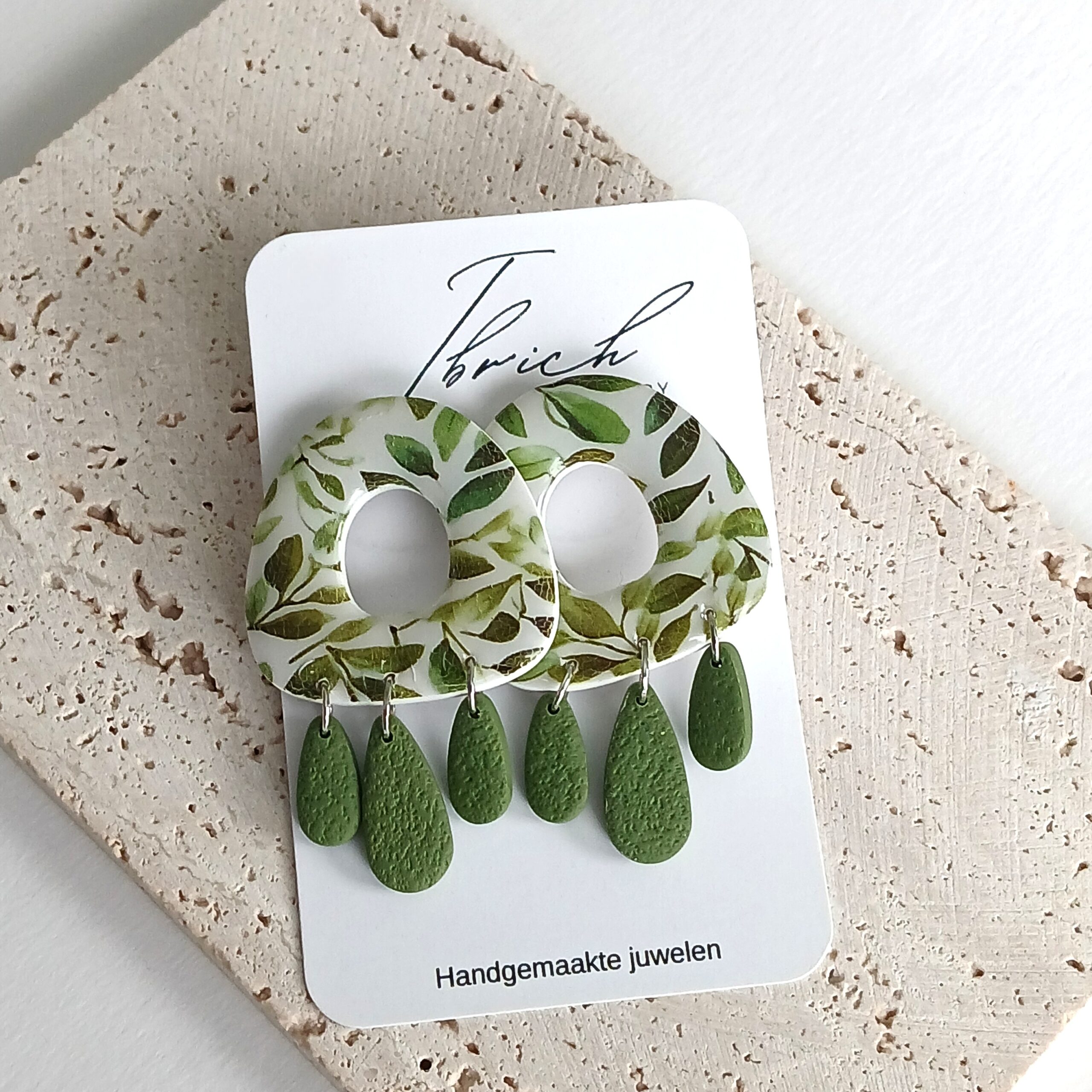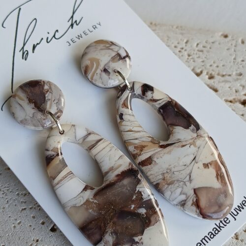 De oorbellen zijn handgemaakt in polymeerklei dus licht en aangenaam om dragen.