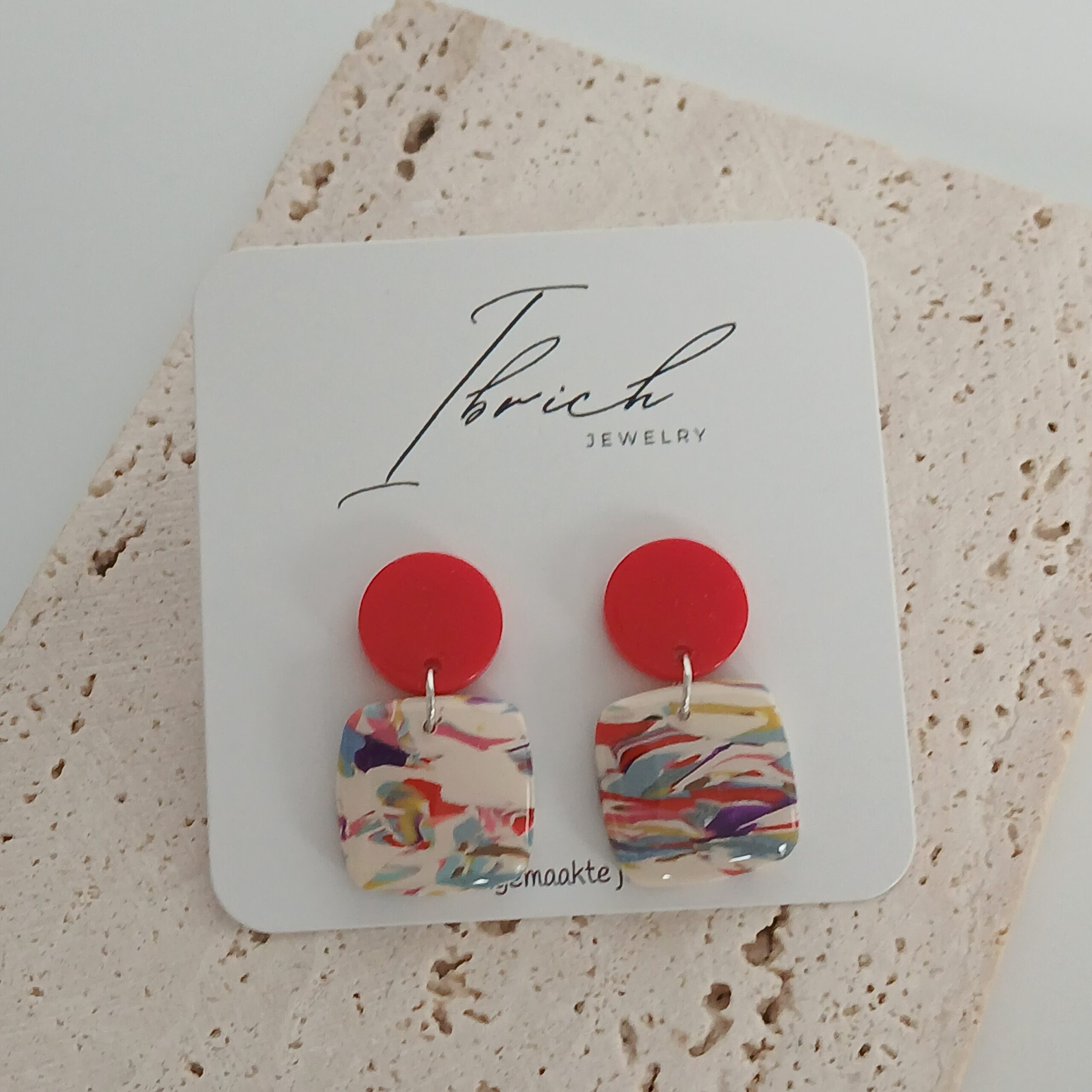 De oorbellen zijn handgemaakt in polymeerklei dus licht en aangenaam om dragen.