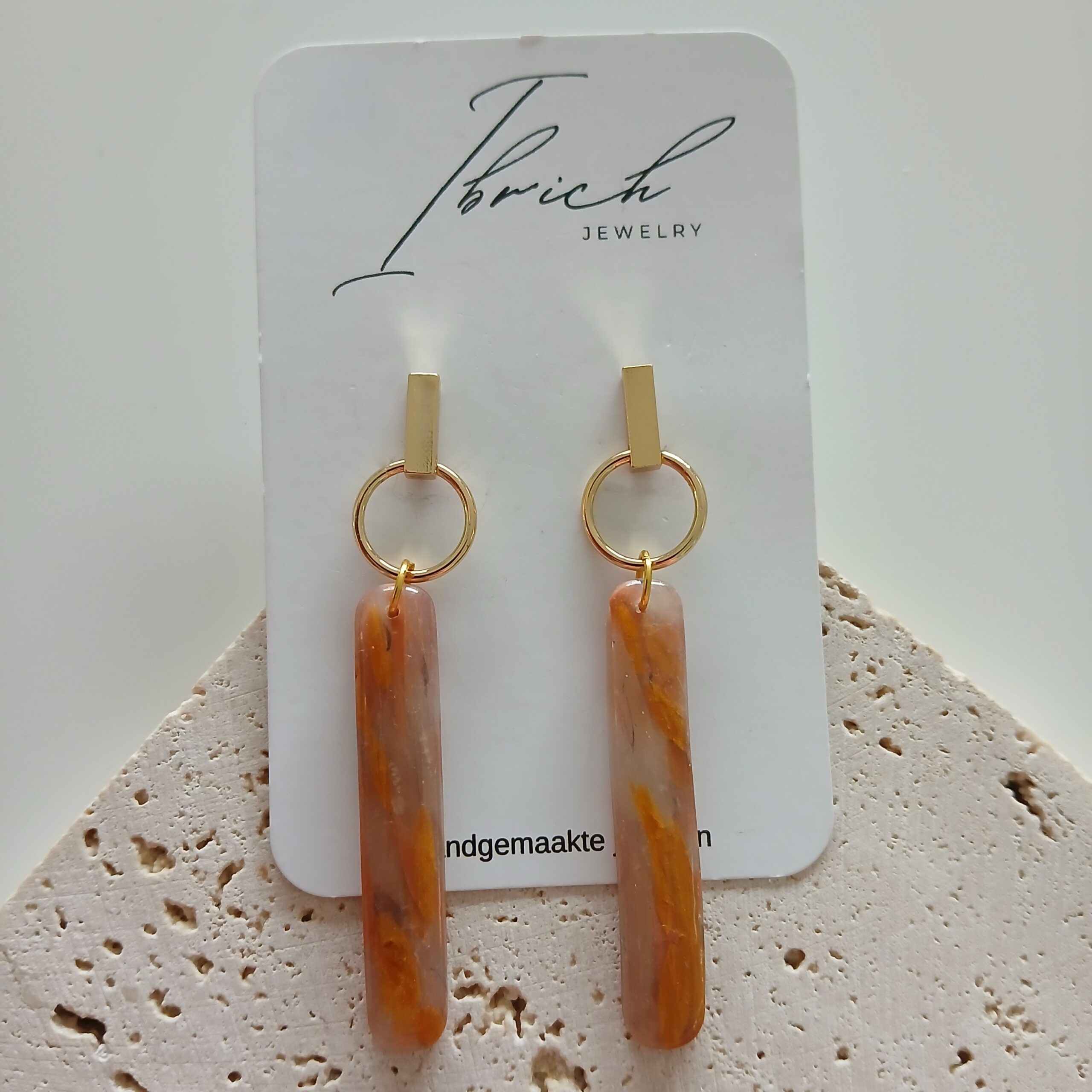 De oorbellen zijn handgemaakt in polymeerklei dus licht en aangenaam om dragen.