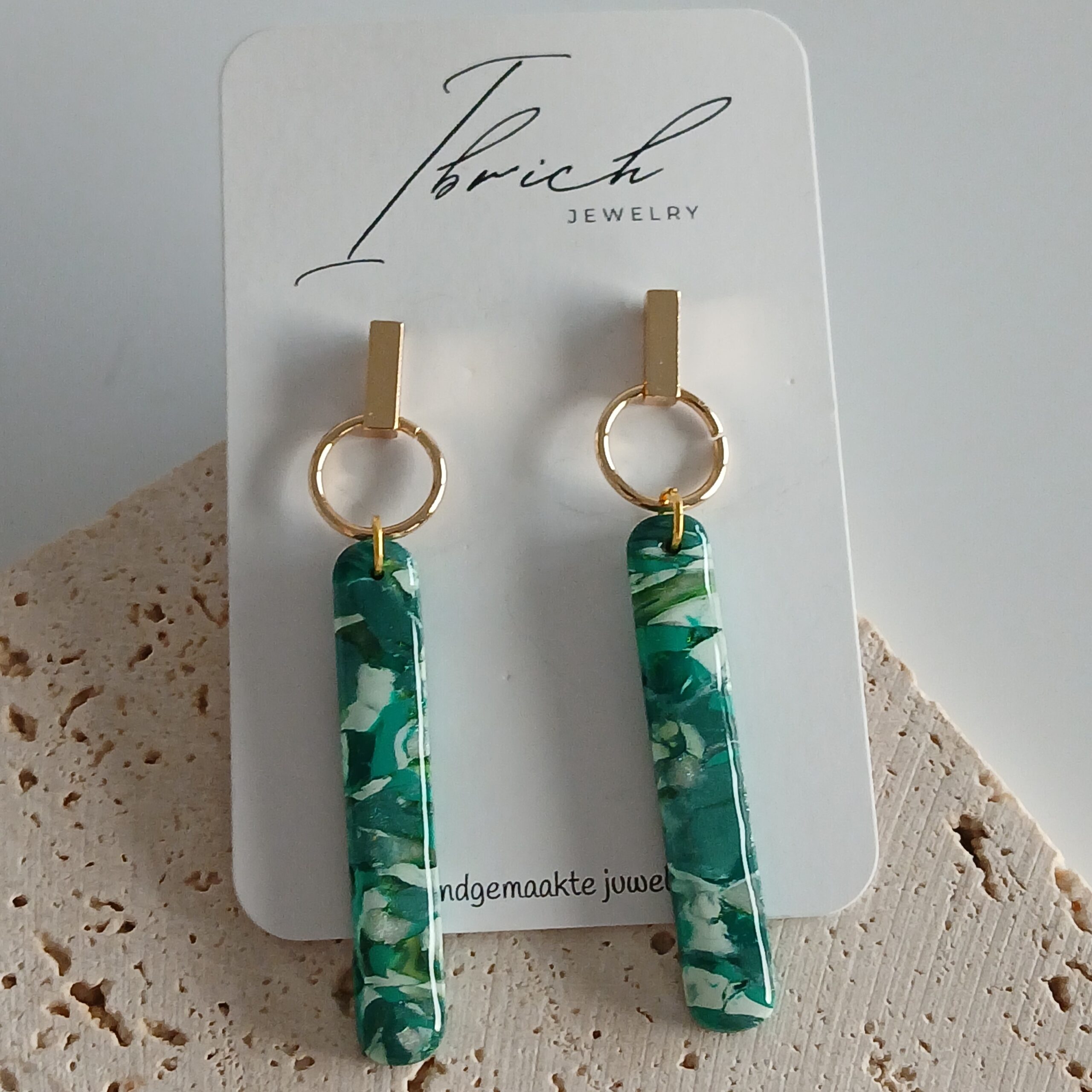 De oorbellen zijn handgemaakt in polymeerklei dus licht en aangenaam om dragen.