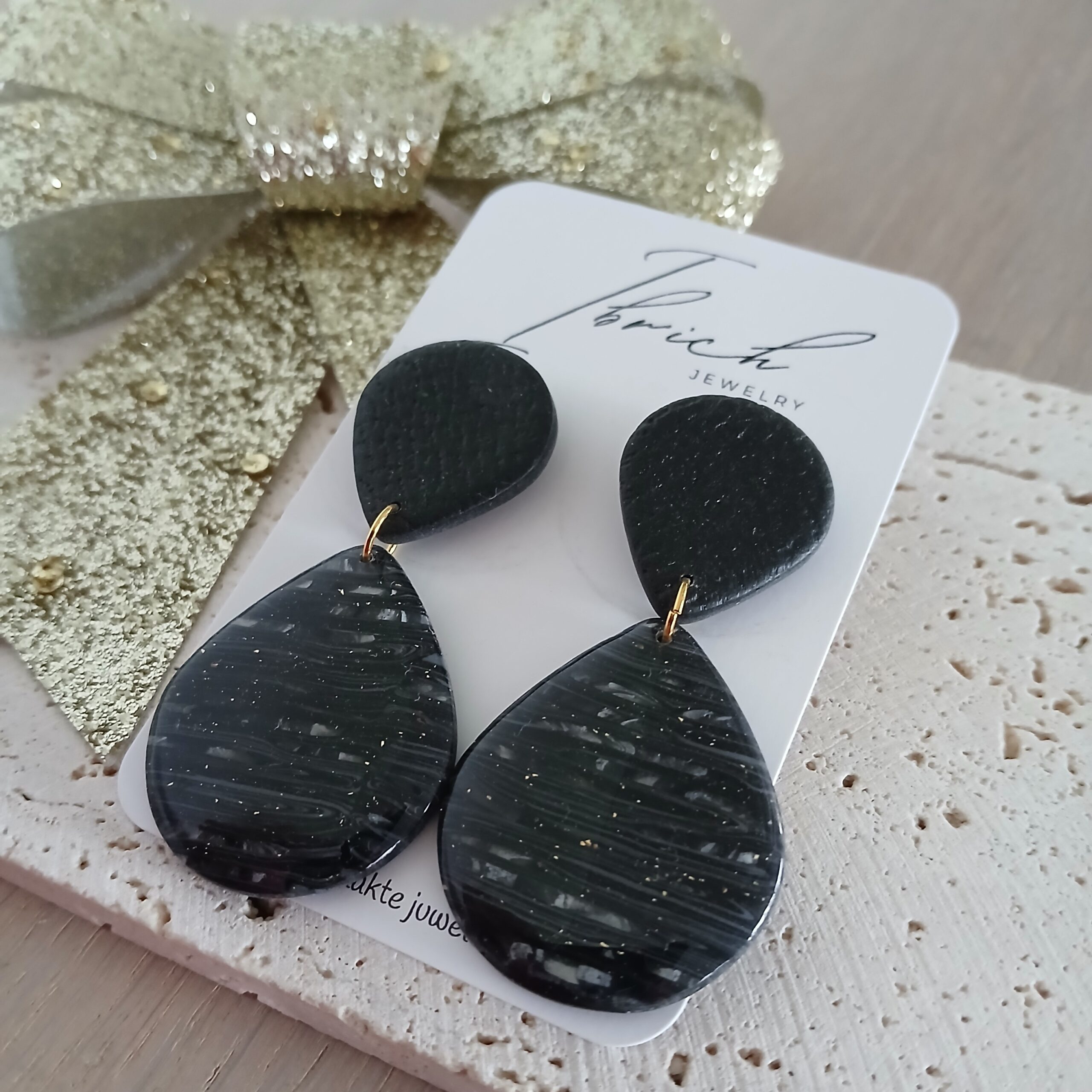 De oorbellen zijn handgemaakt in polymeerklei dus licht en aangenaam om dragen.