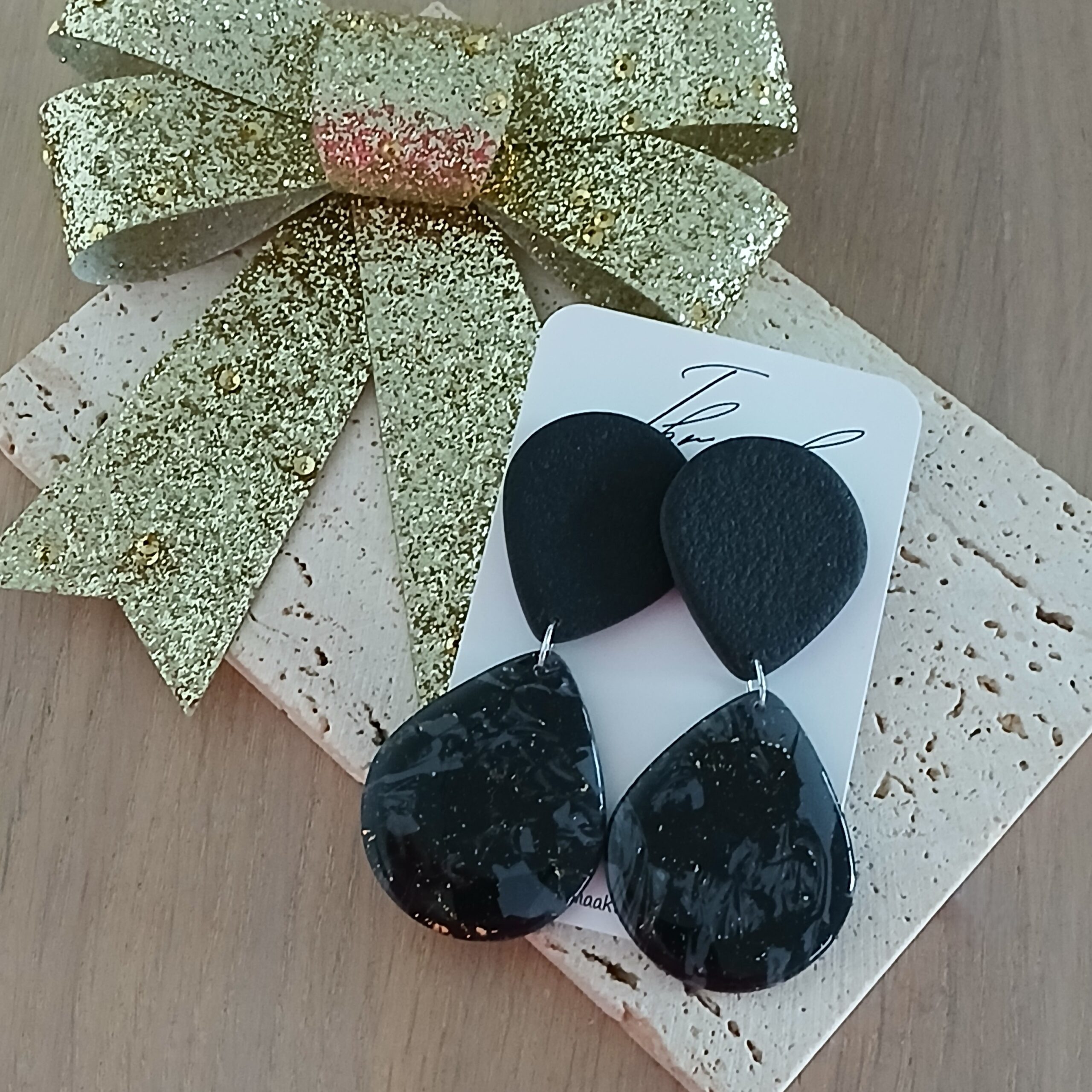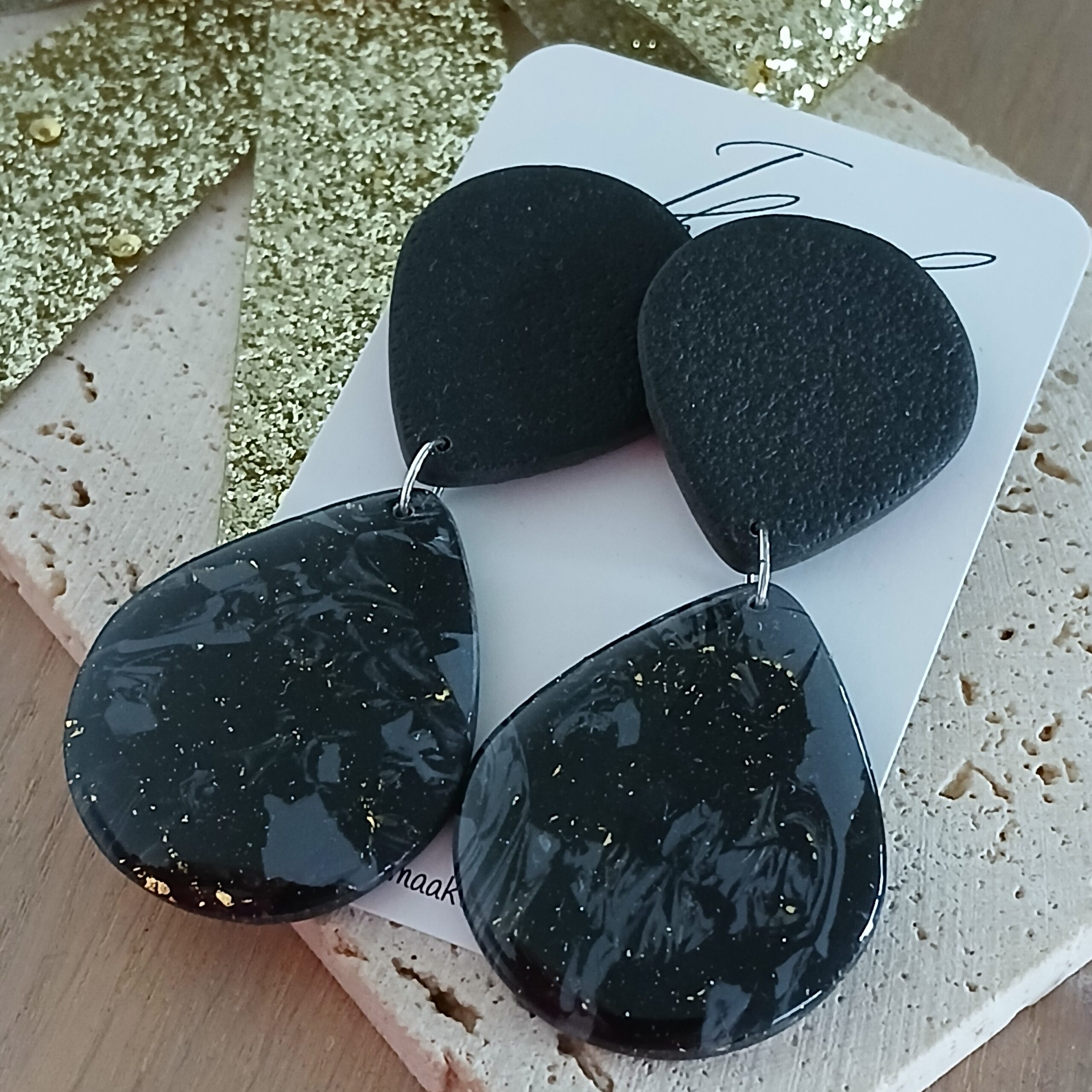 De oorbellen zijn handgemaakt in polymeerklei dus licht en aangenaam om dragen.