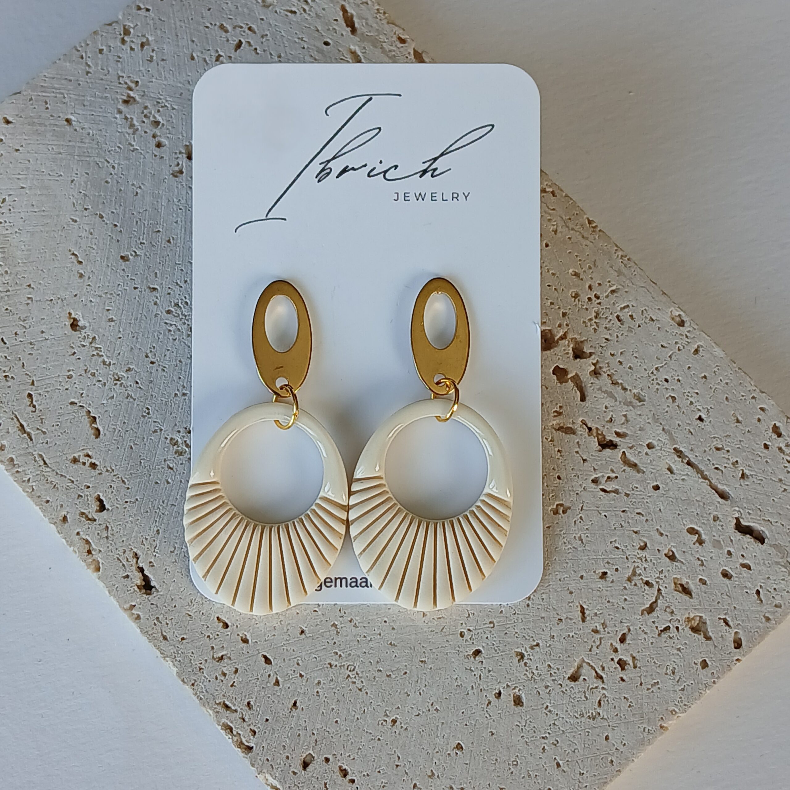 De oorbellen zijn handgemaakt in polymeerklei dus licht en aangenaam om dragen.