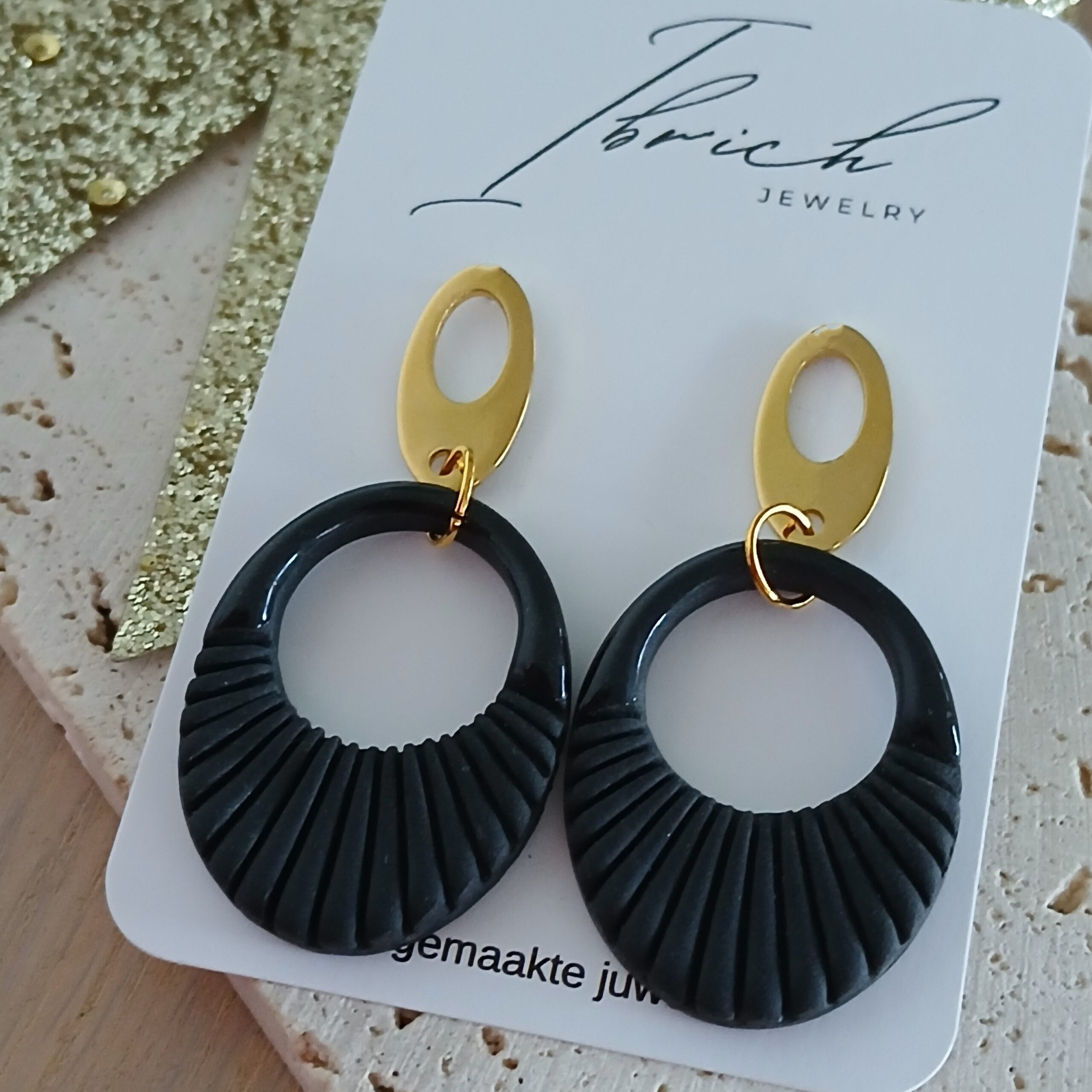De oorbellen zijn handgemaakt in polymeerklei dus licht en aangenaam om dragen.