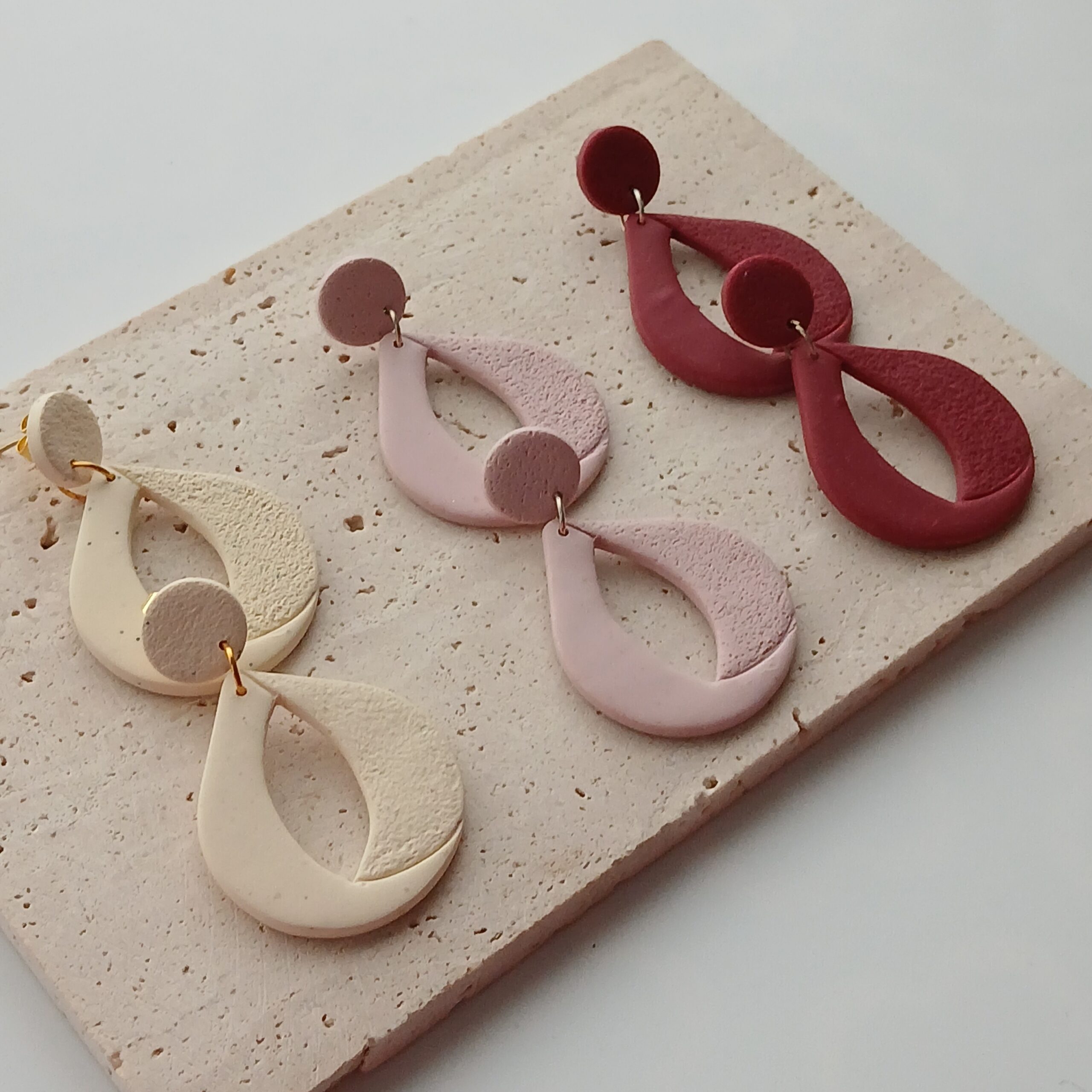 De oorbellen zijn handgemaakt in polymeerklei dus licht en aangenaam om dragen.