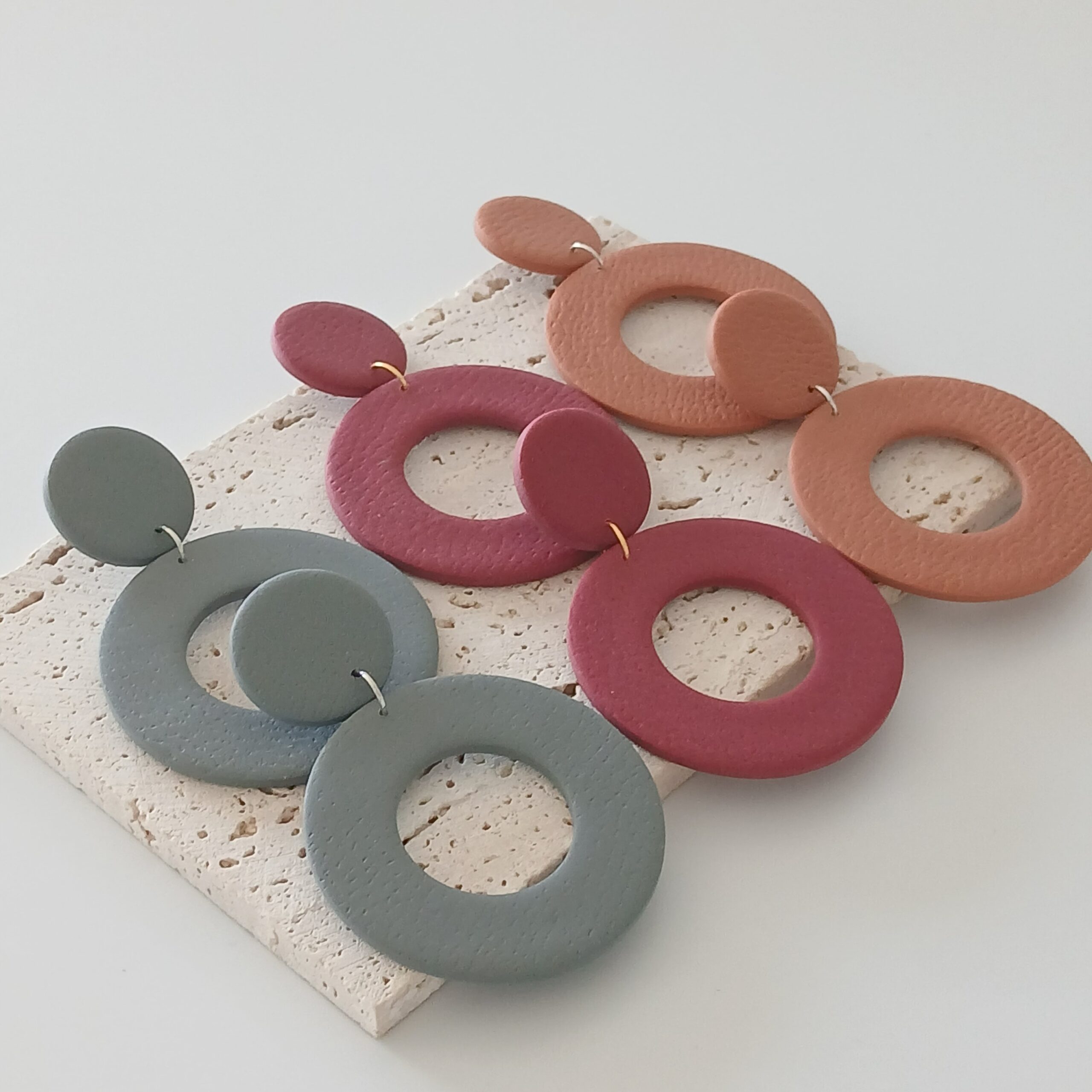 De oorbellen zijn handgemaakt in polymeerklei dus licht en aangenaam om dragen.