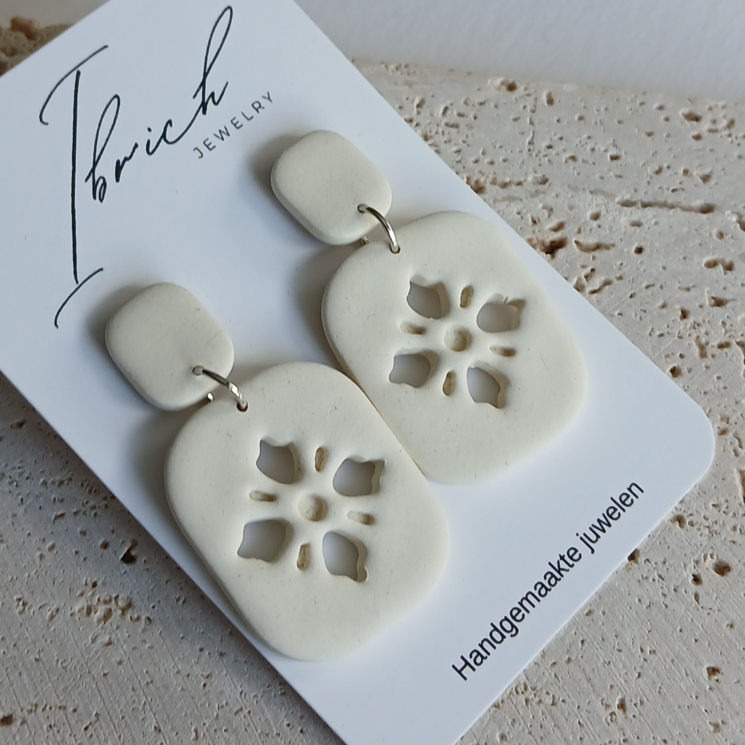 De oorbellen zijn handgemaakt in polymeerklei dus licht en aangenaam om dragen.