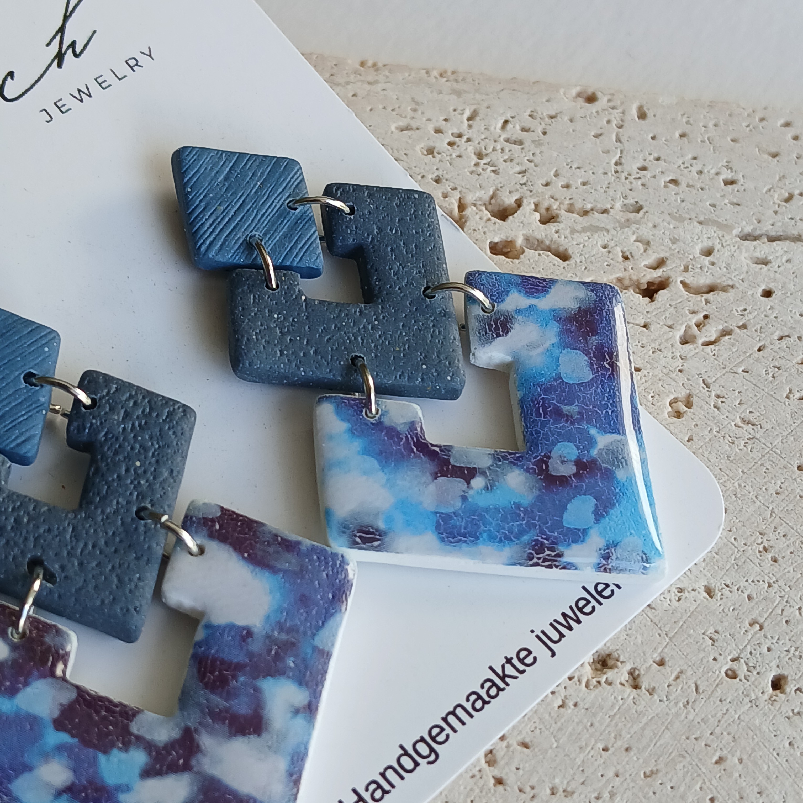 De oorbellen zijn handgemaakt in polymeerklei dus licht en aangenaam om dragen.