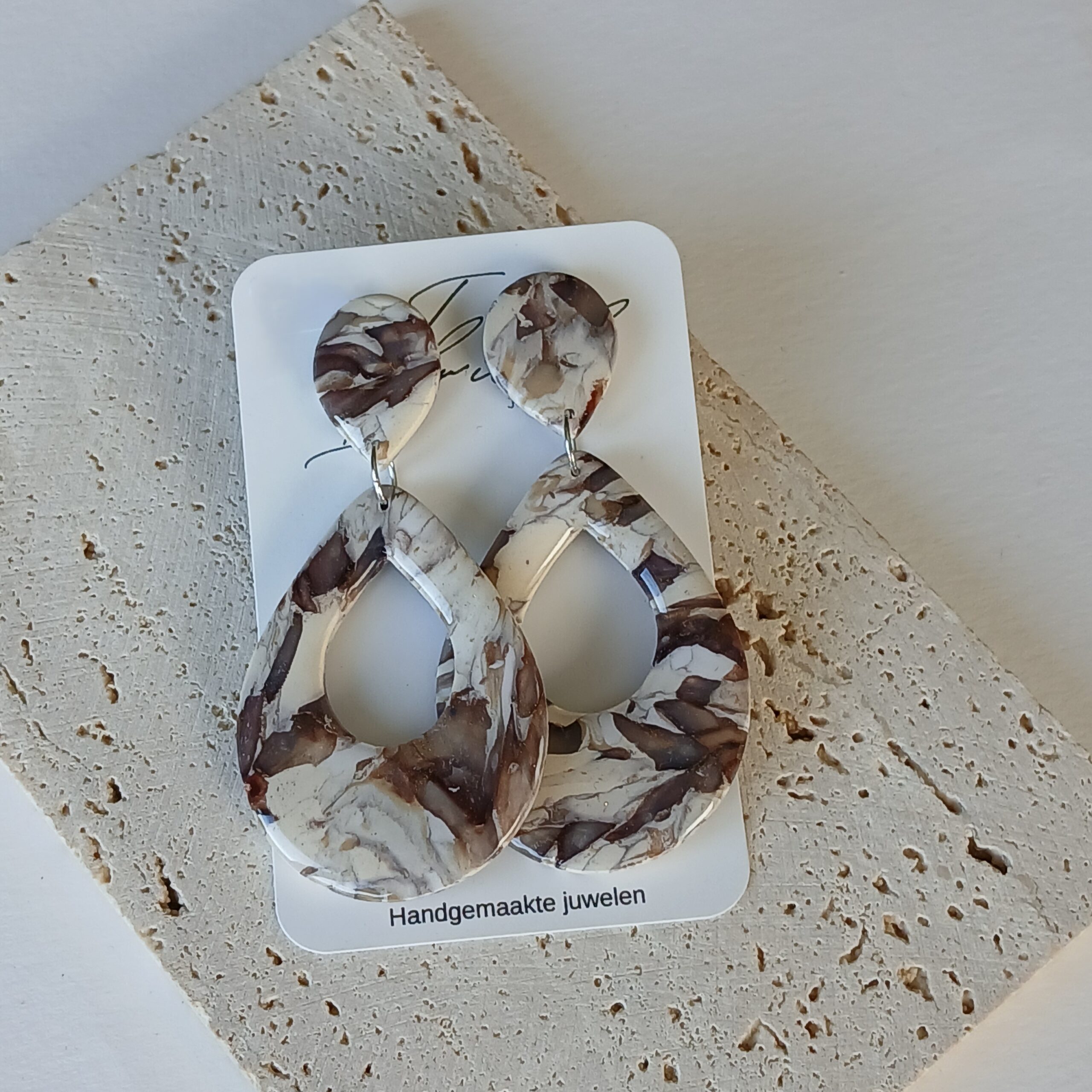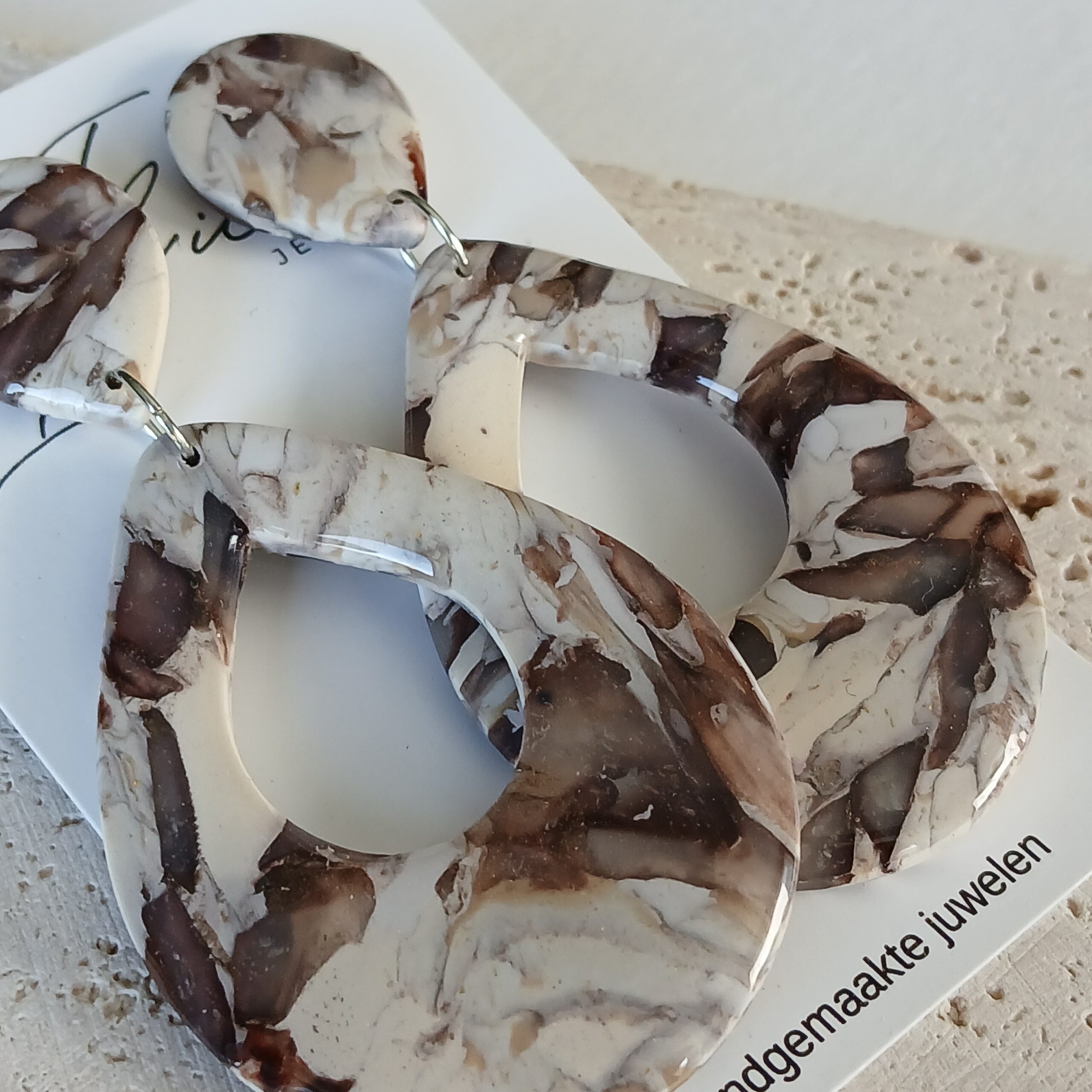 De oorbellen zijn handgemaakt in polymeerklei dus licht en aangenaam om dragen.