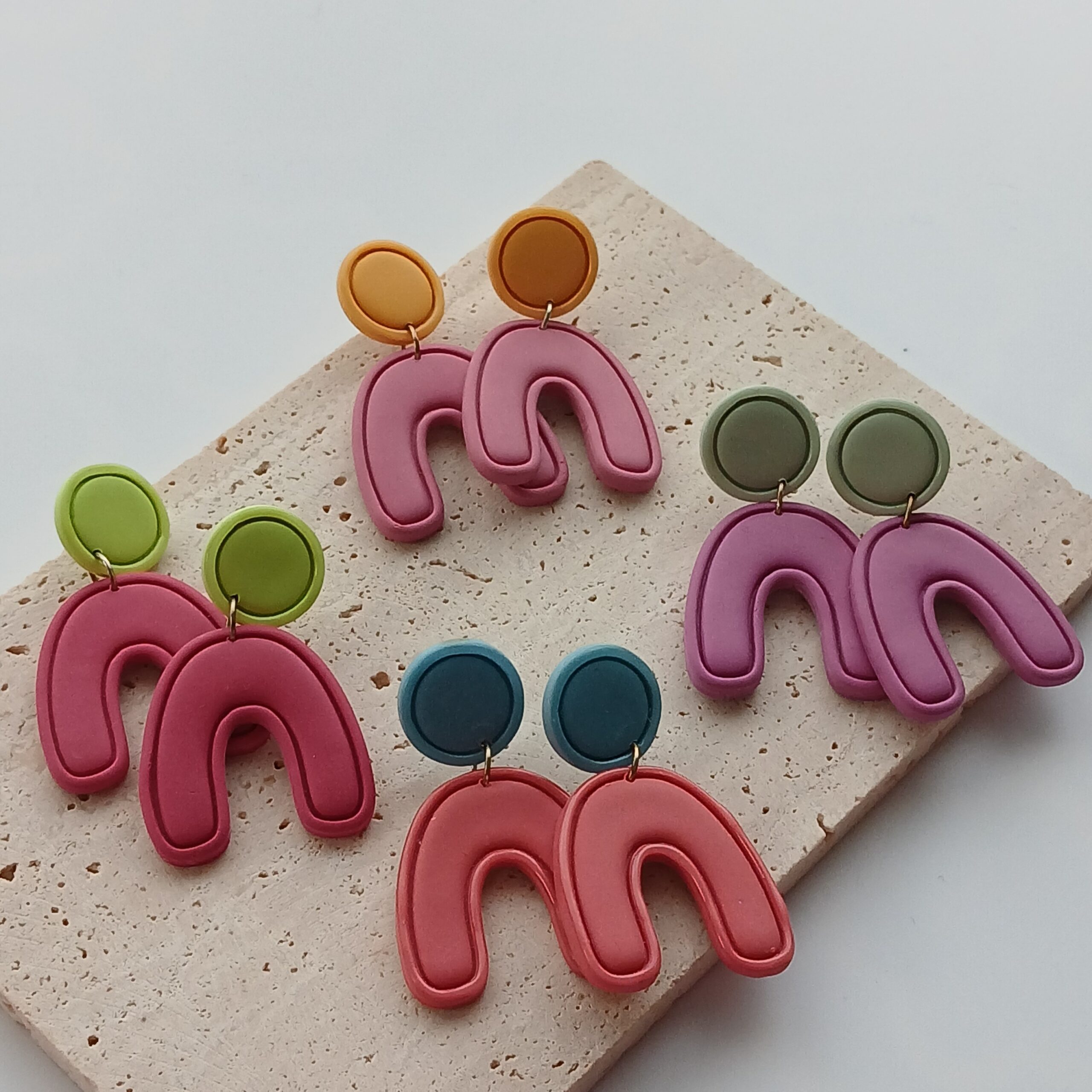 De oorbellen zijn handgemaakt in polymeerklei dus licht en aangenaam om dragen.