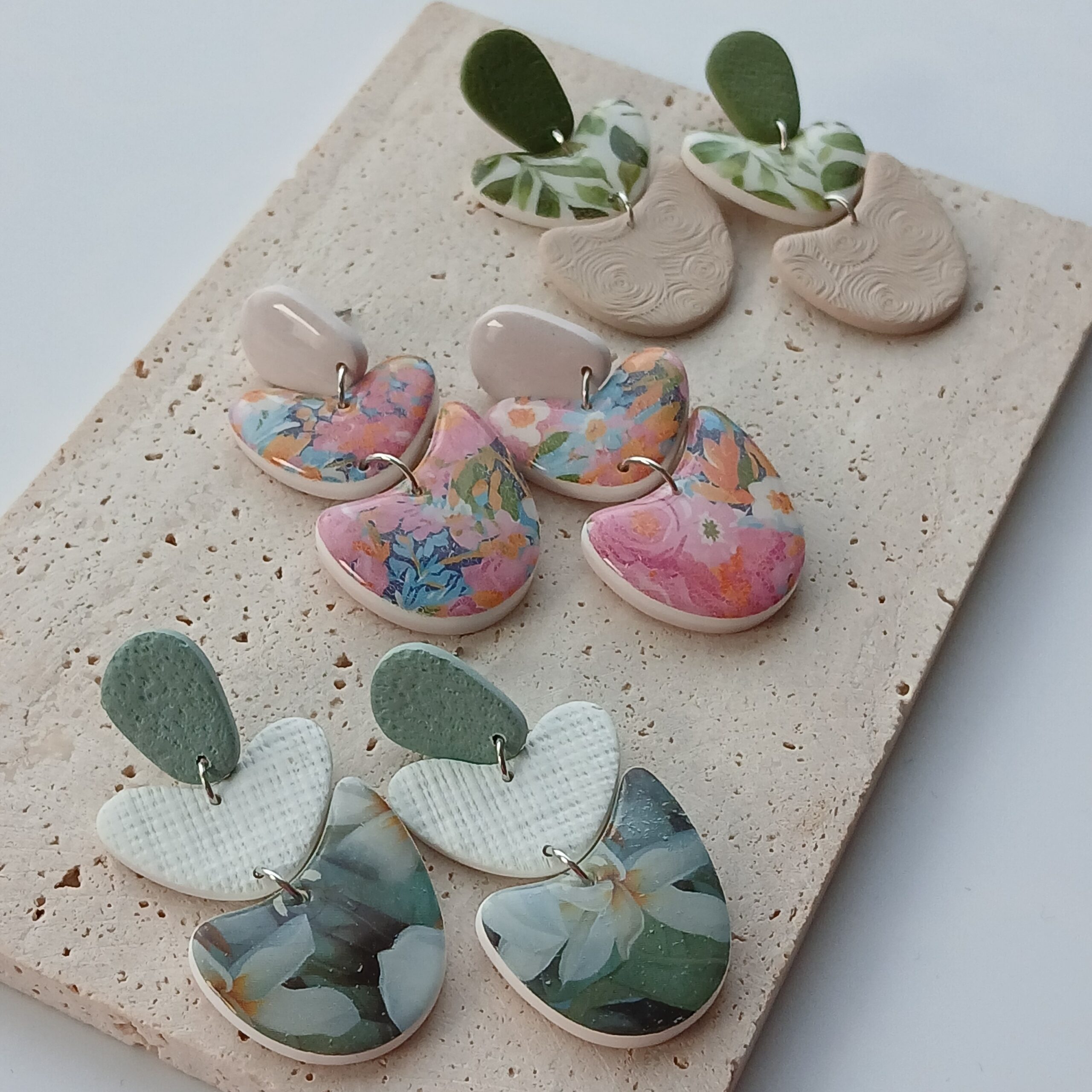 De oorbellen zijn handgemaakt in polymeerklei dus licht en aangenaam om dragen.