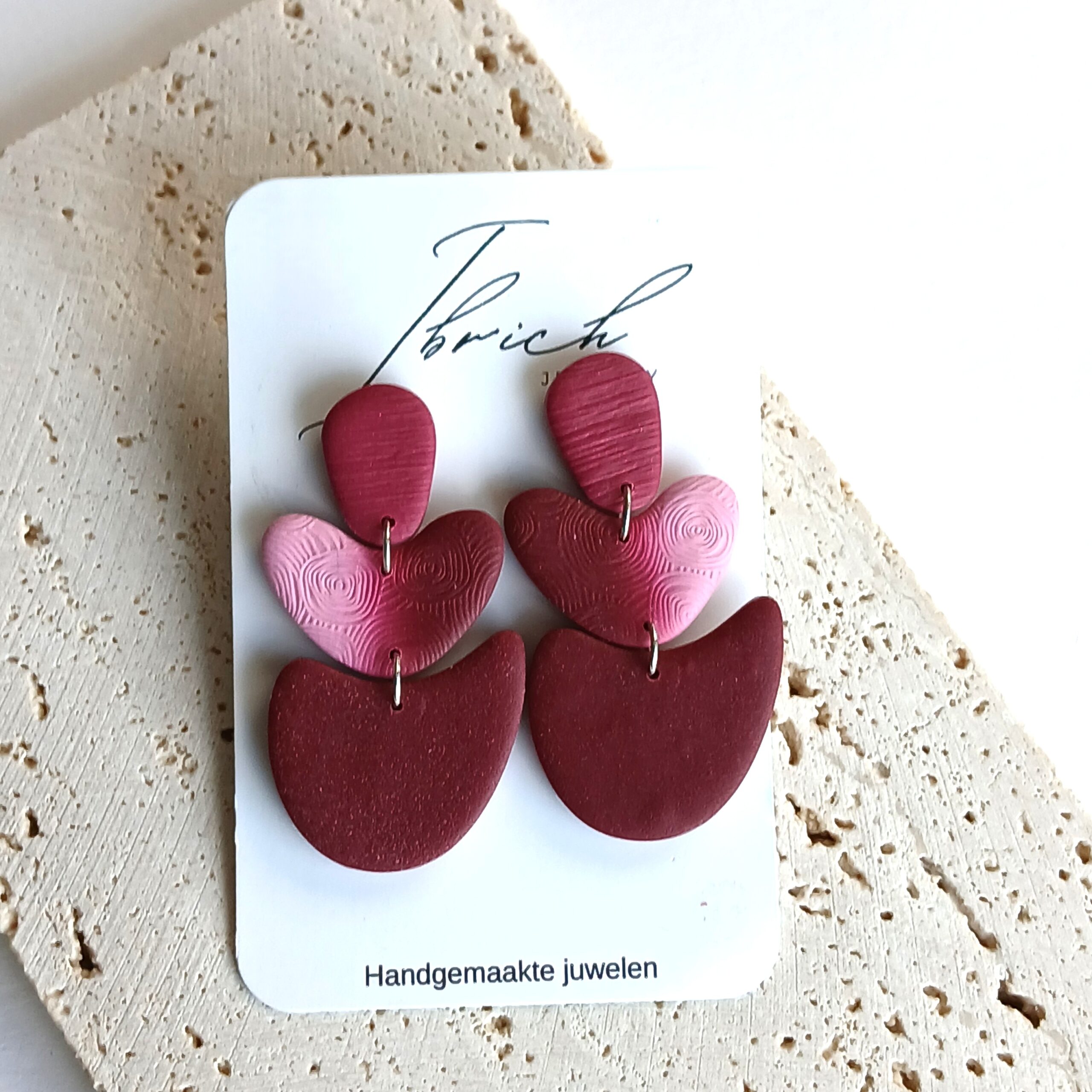 De oorbellen zijn handgemaakt in polymeerklei dus licht en aangenaam om dragen.