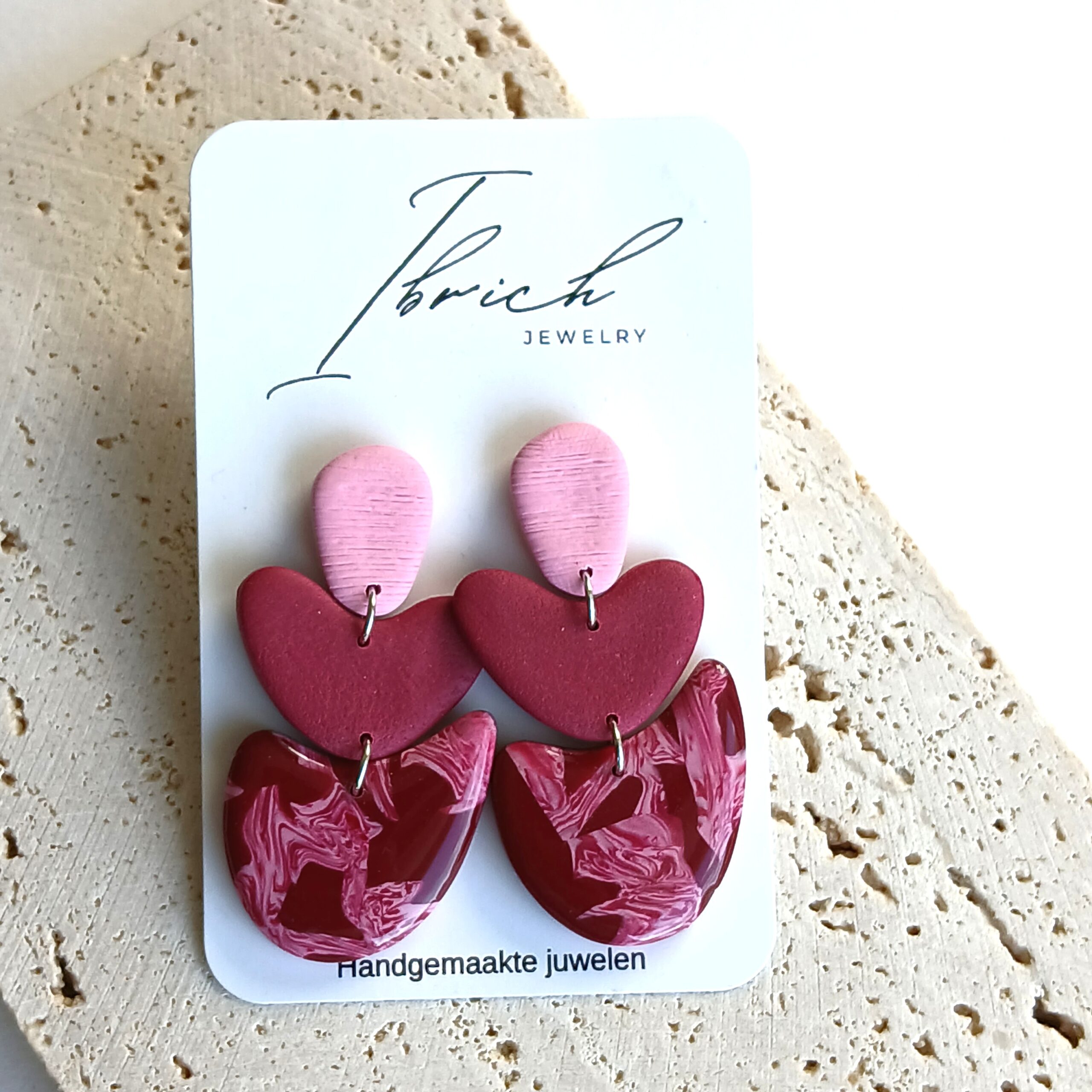 De oorbellen zijn handgemaakt in polymeerklei dus licht en aangenaam om dragen.