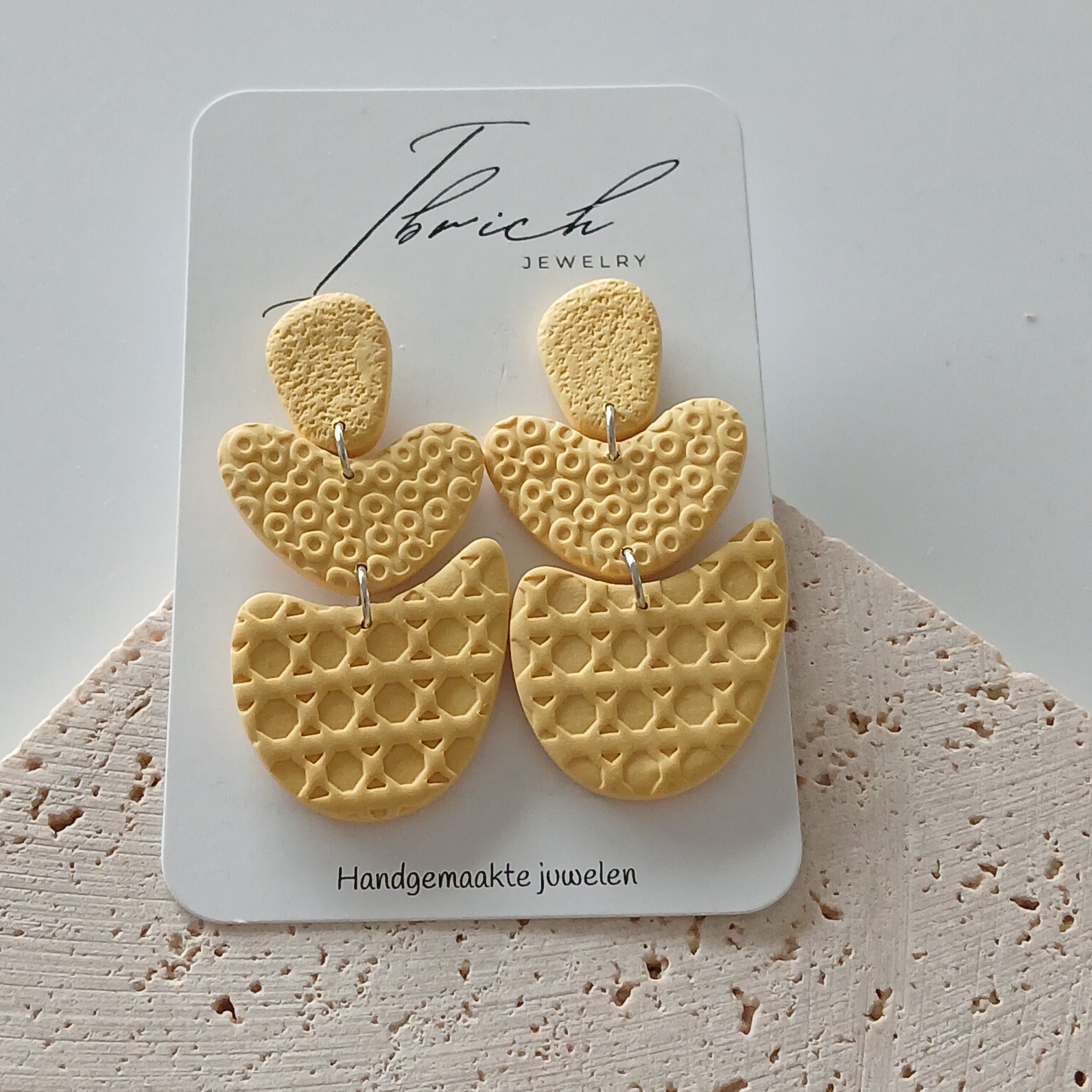 De oorbellen zijn handgemaakt in polymeerklei dus licht en aangenaam om dragen.