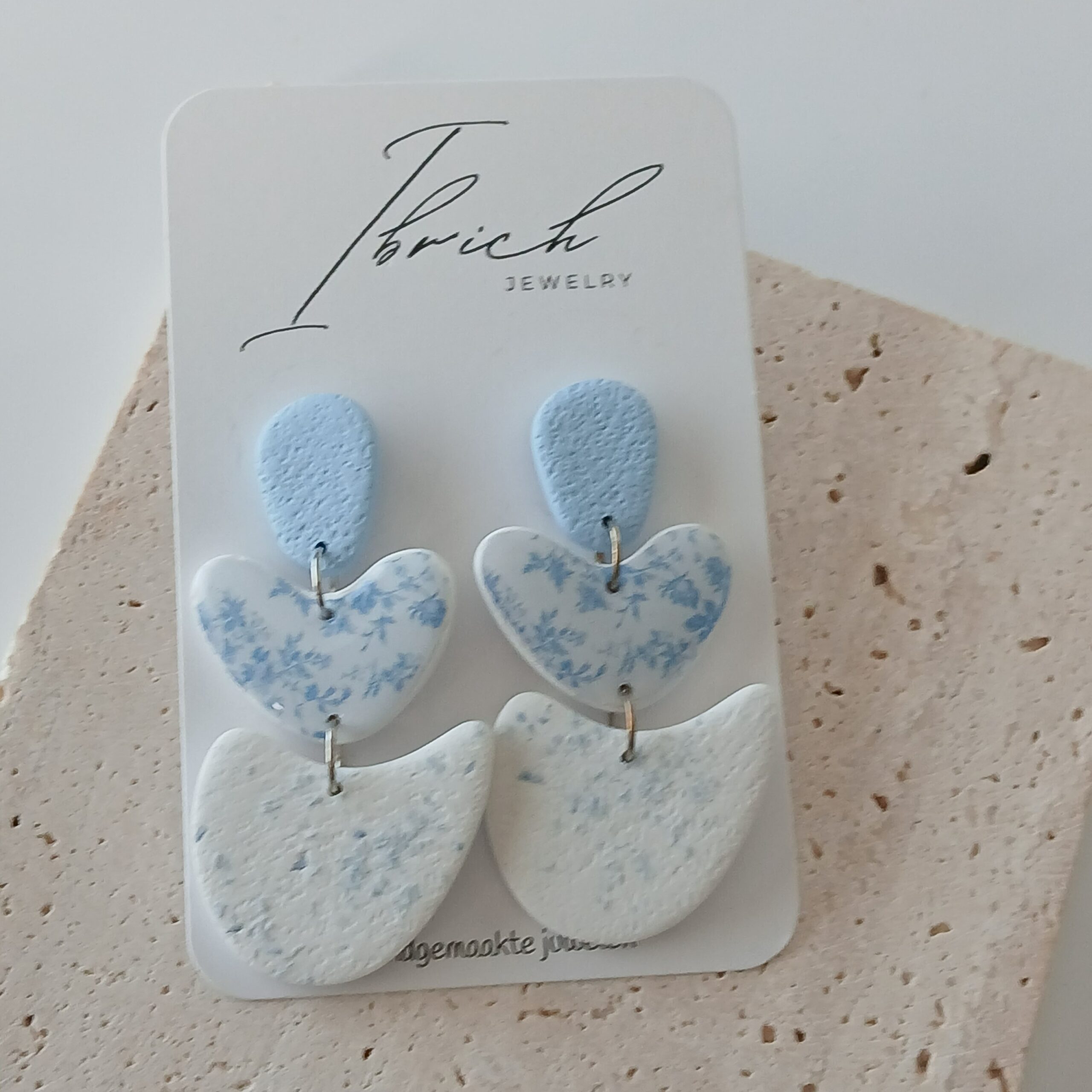 De oorbellen zijn handgemaakt in polymeerklei dus licht en aangenaam om dragen.