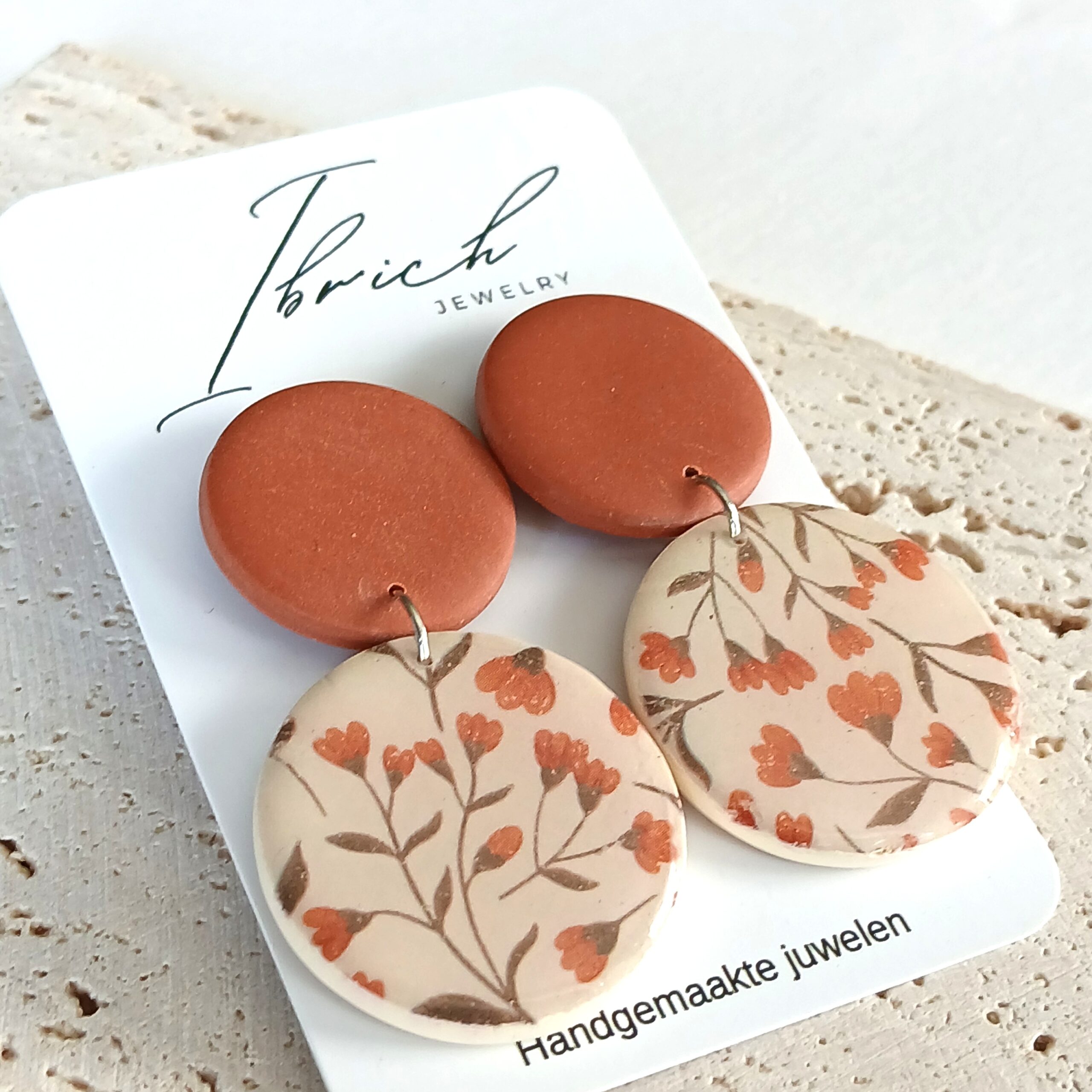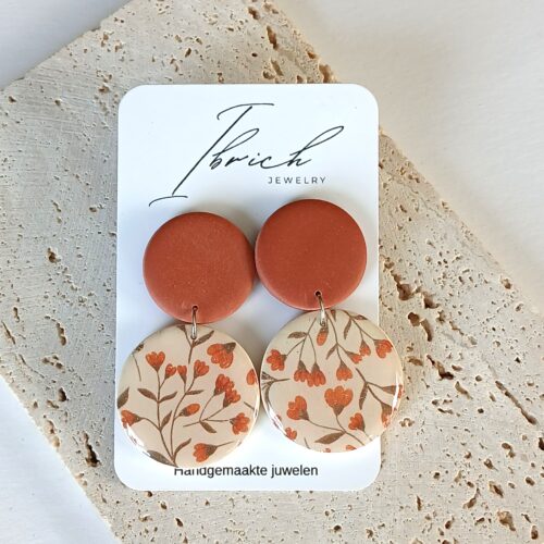 De oorbellen zijn handgemaakt in polymeerklei dus licht en aangenaam om dragen.