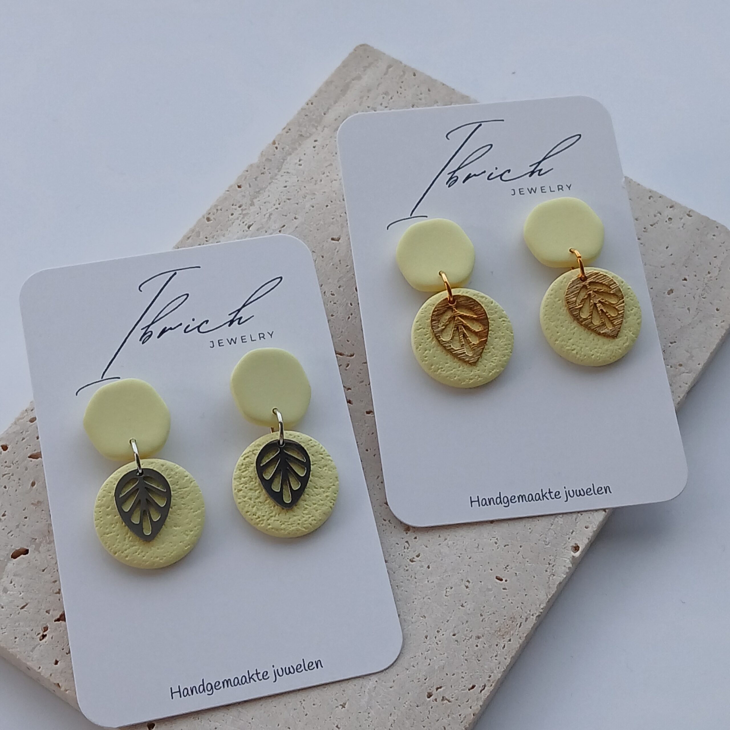 De oorbellen zijn handgemaakt in polymeerklei dus licht en aangenaam om dragen.