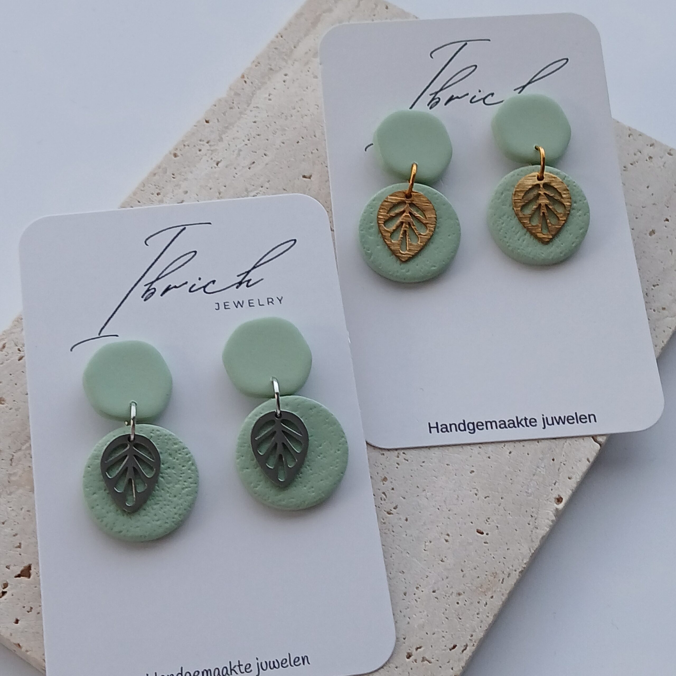 De oorbellen zijn handgemaakt in polymeerklei dus licht en aangenaam om dragen.