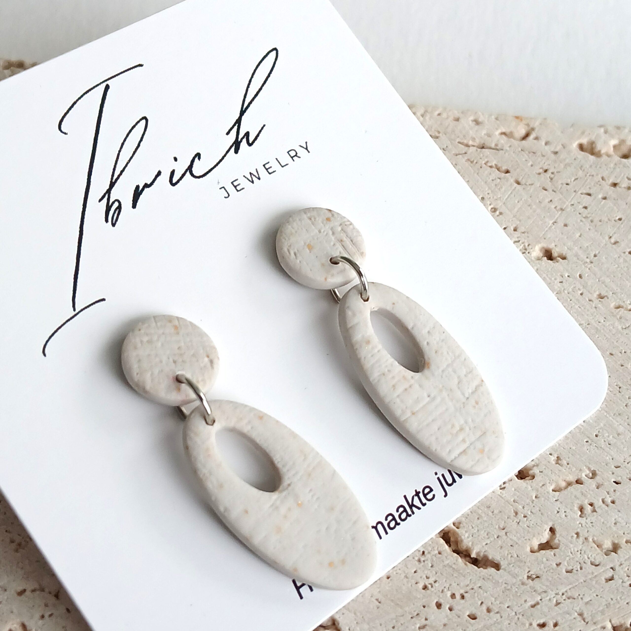 De oorbellen zijn handgemaakt in polymeerklei dus licht en aangenaam om dragen.