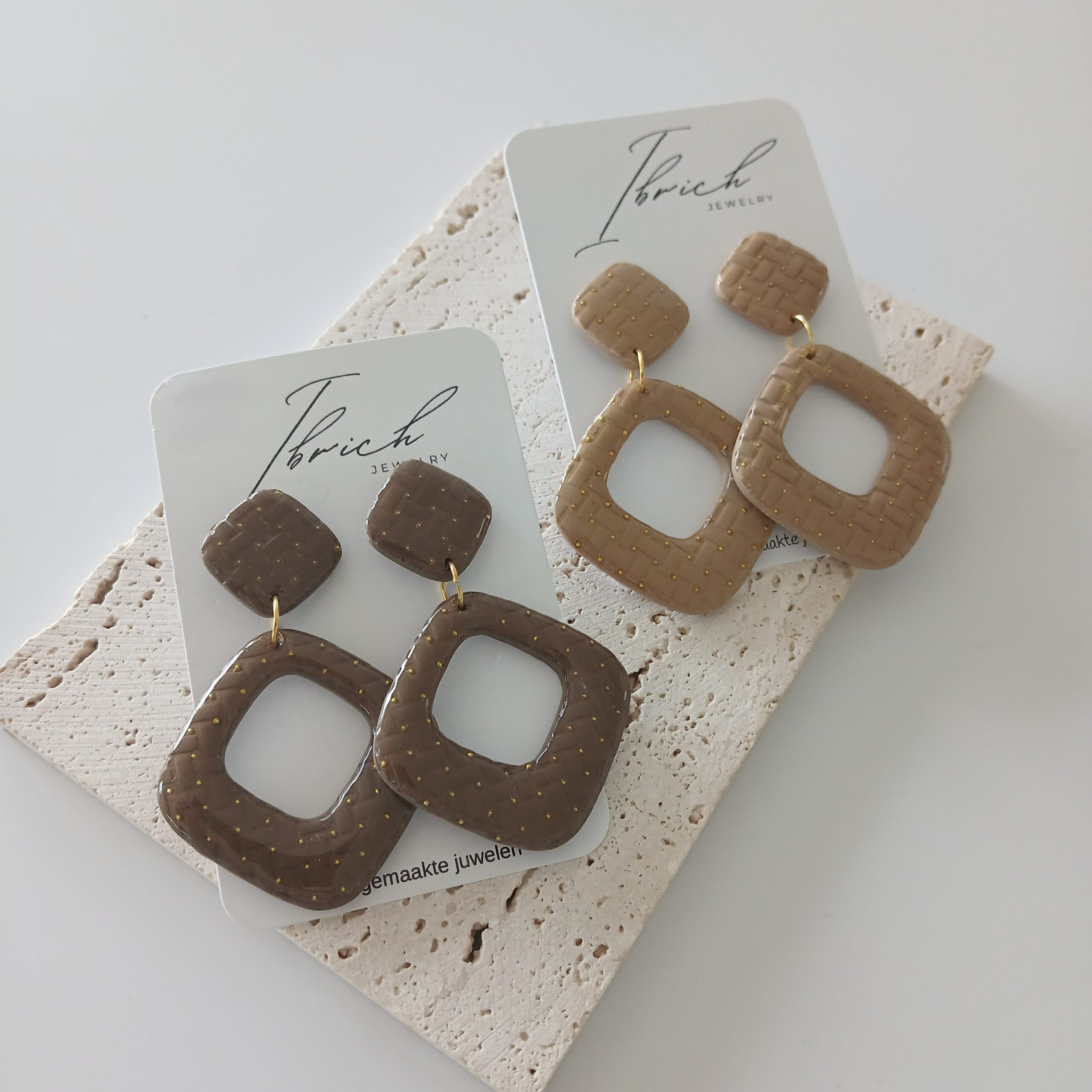 De oorbellen zijn handgemaakt in polymeerklei dus licht en aangenaam om dragen.