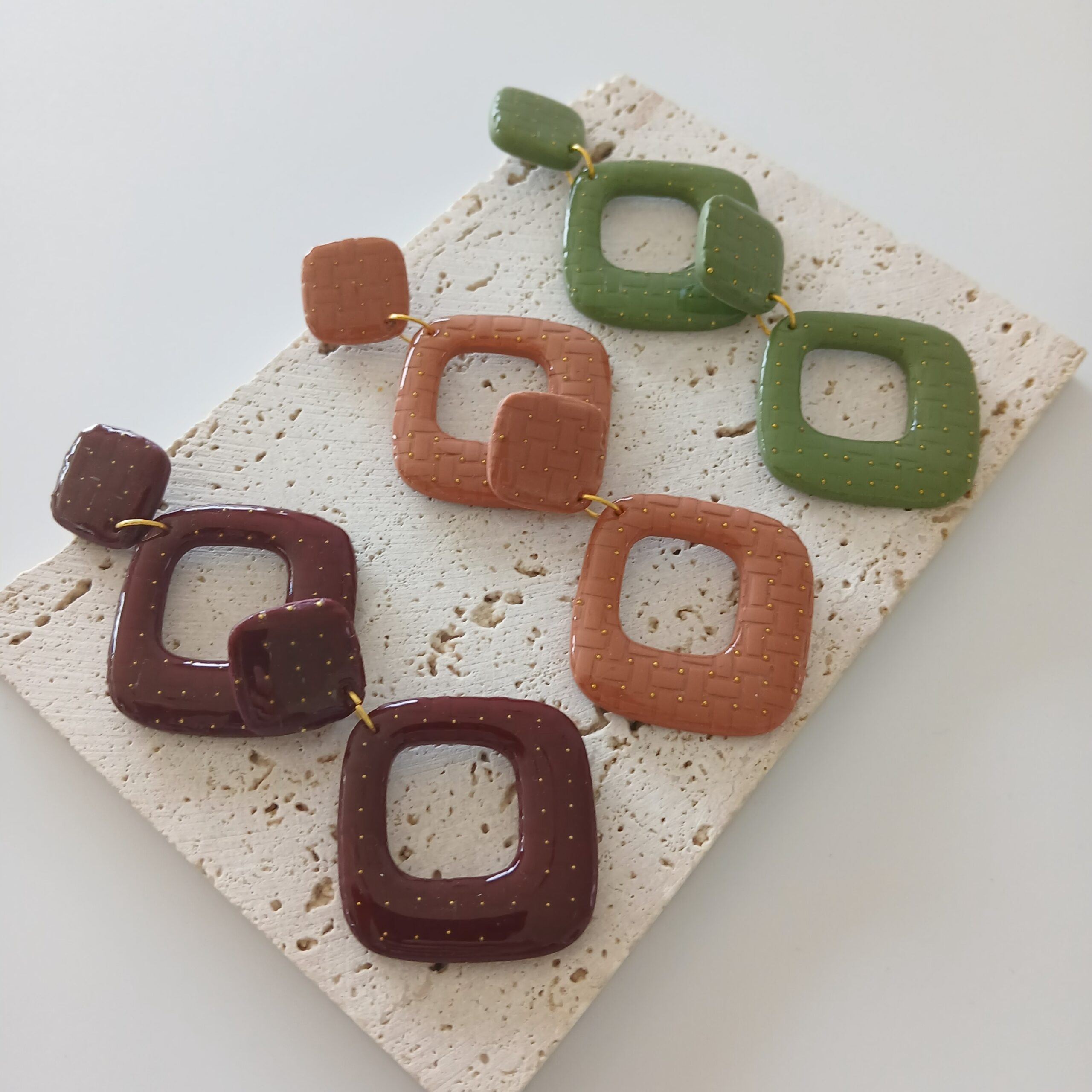 De oorbellen zijn handgemaakt in polymeerklei dus licht en aangenaam om dragen.