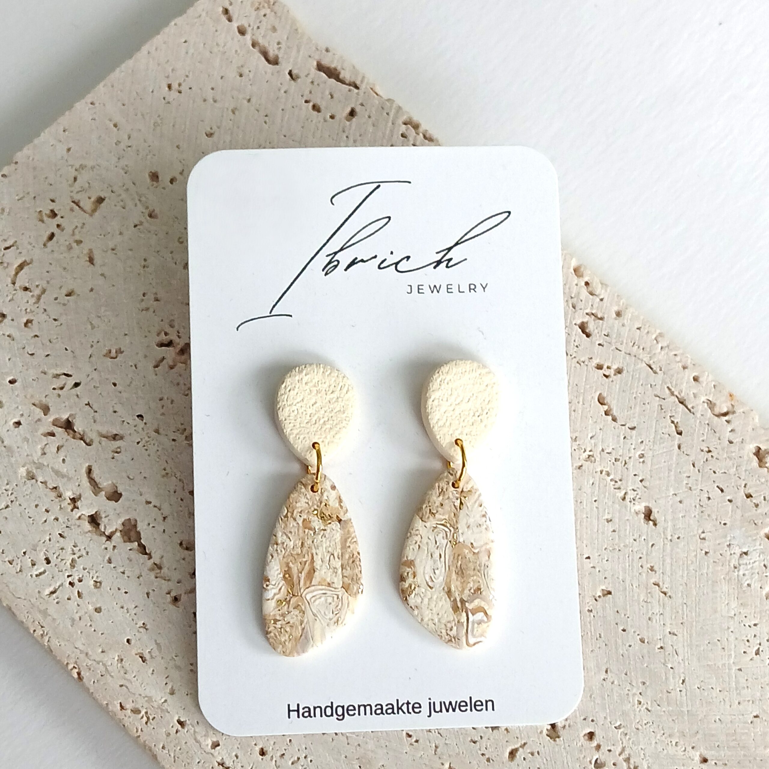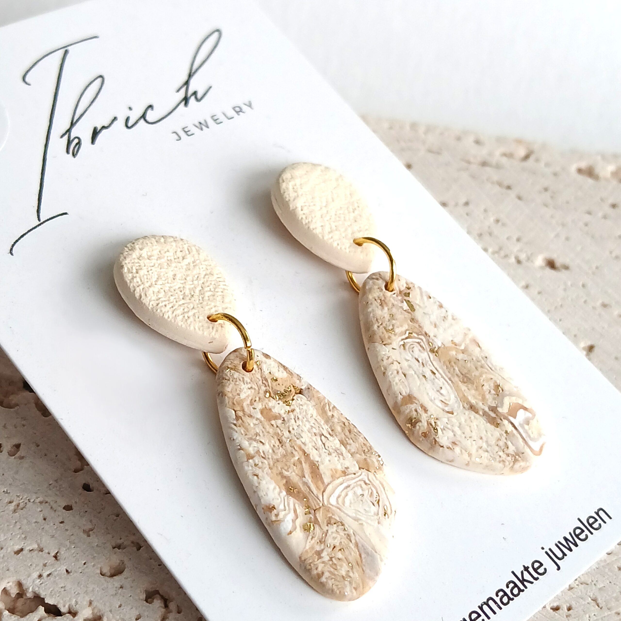 De oorbellen zijn handgemaakt in polymeerklei dus licht en aangenaam om dragen.