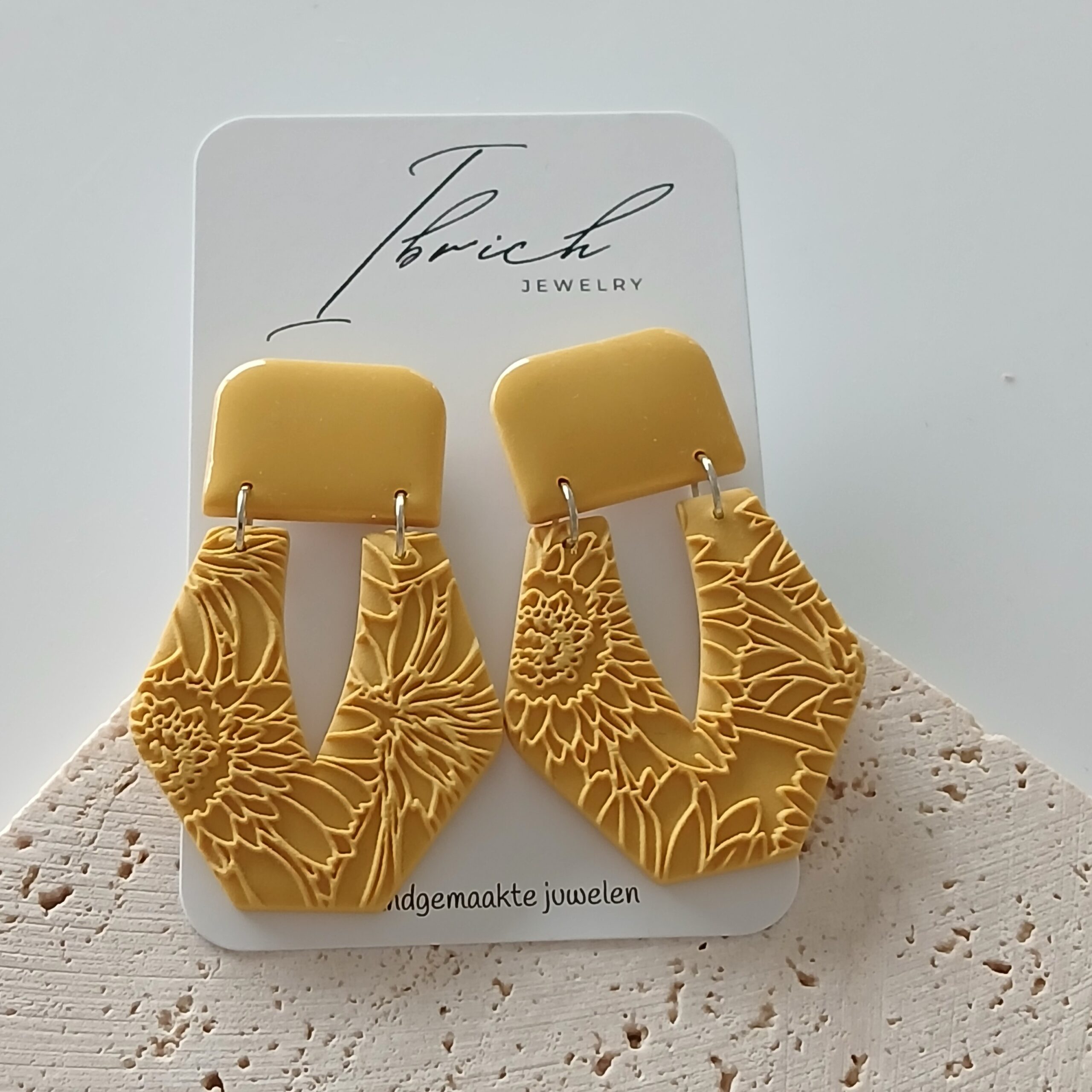 De oorbellen zijn handgemaakt in polymeerklei dus licht en aangenaam om dragen.